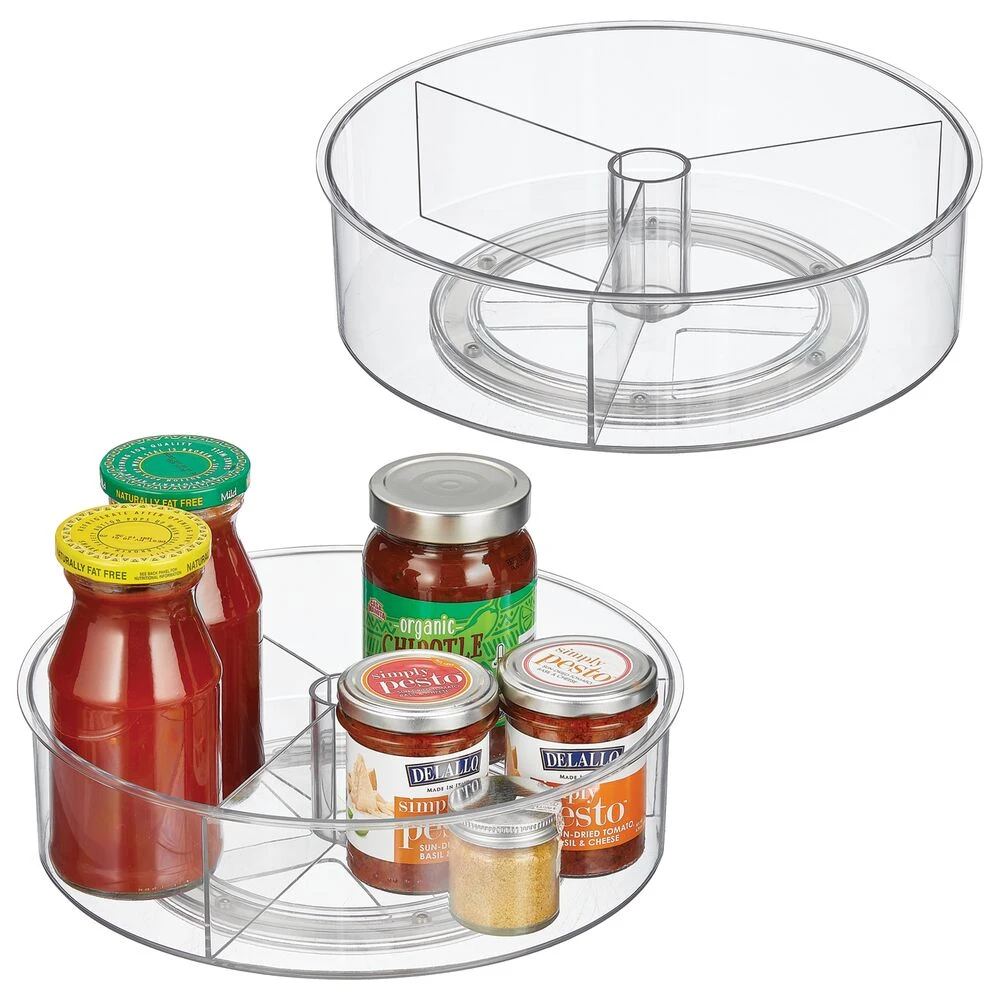 Our Divided Lazy Susan Turntable keeps inventory of what you have if items are hard to reach and is sized to fit inside deep cabinets or pantry shelves. Sort, store and separate condiment bottles, spices, and other go-to kitchen items with three divided compartments that provide reach-in access to contents inside.