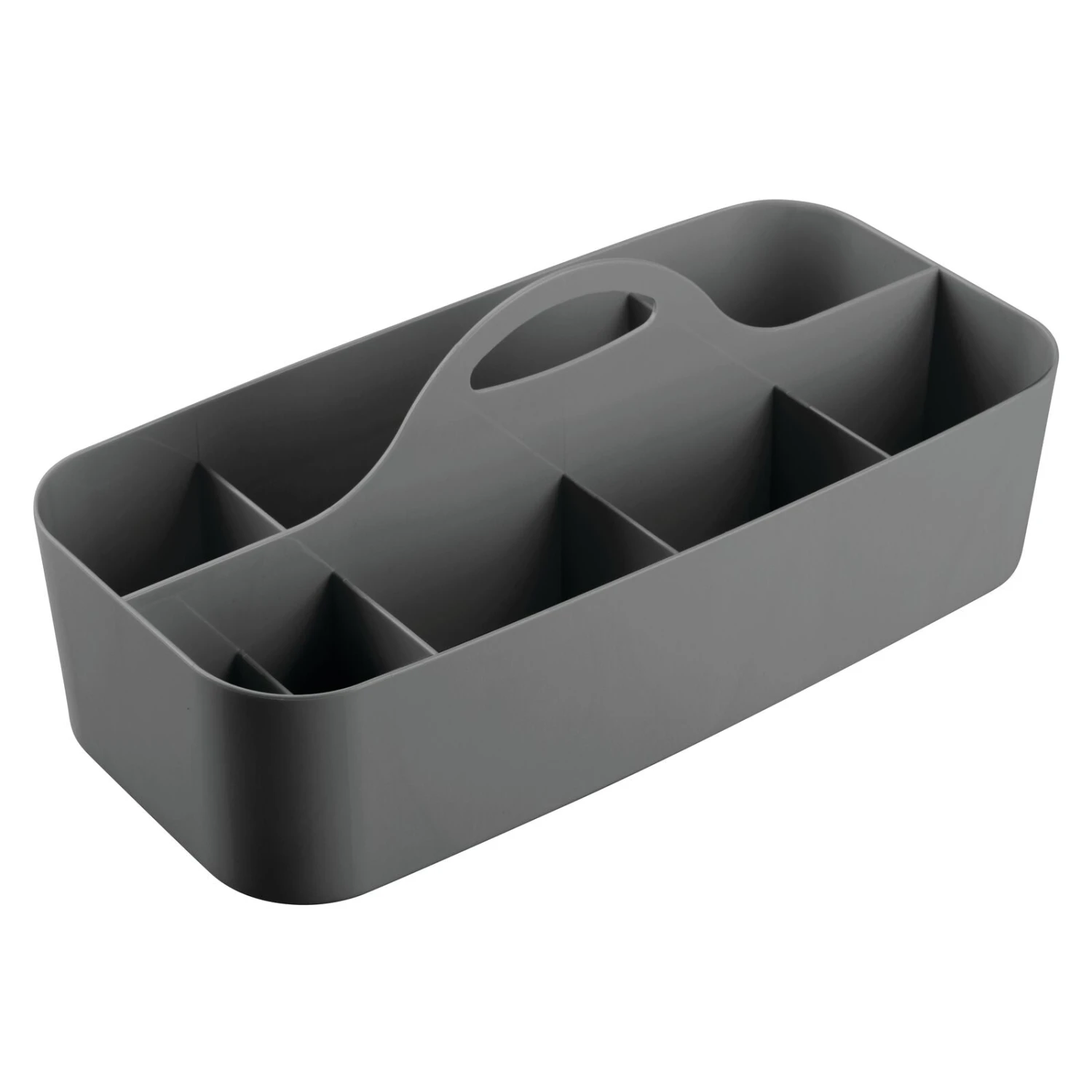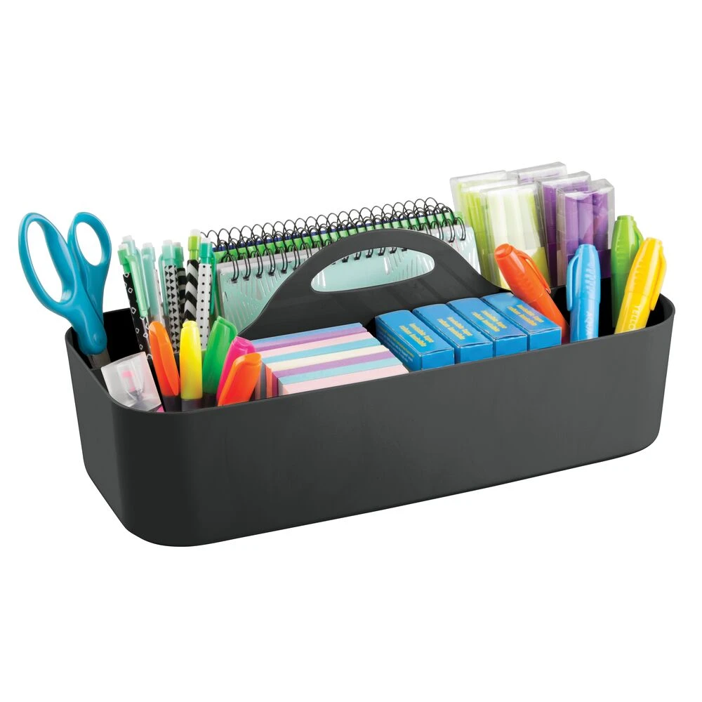 Keep your most reached-for supplies front and center and instantly transform your working space with our 11-Section Desk Caddy. Eleven compartments of varying sizes provide storage for pens, notecards, scissors, tape, and so much more. Finished with an integrated handle, this portable solution takes you from the office to the craft room with ease.