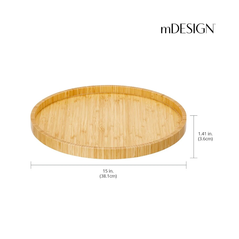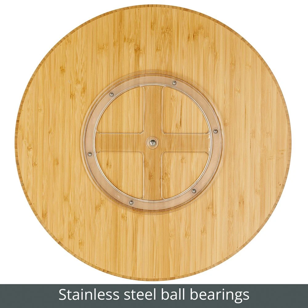 Our Bamboo Turntable brings a durable yet natural look to kitchen organizing. With just a single spin, this lazy susan provides easy accessibility where items are hard to reach. Our revolving organizer features a raised outer wall to keep contents from falling and provides storage space for spices and other go-to kitchen items.
