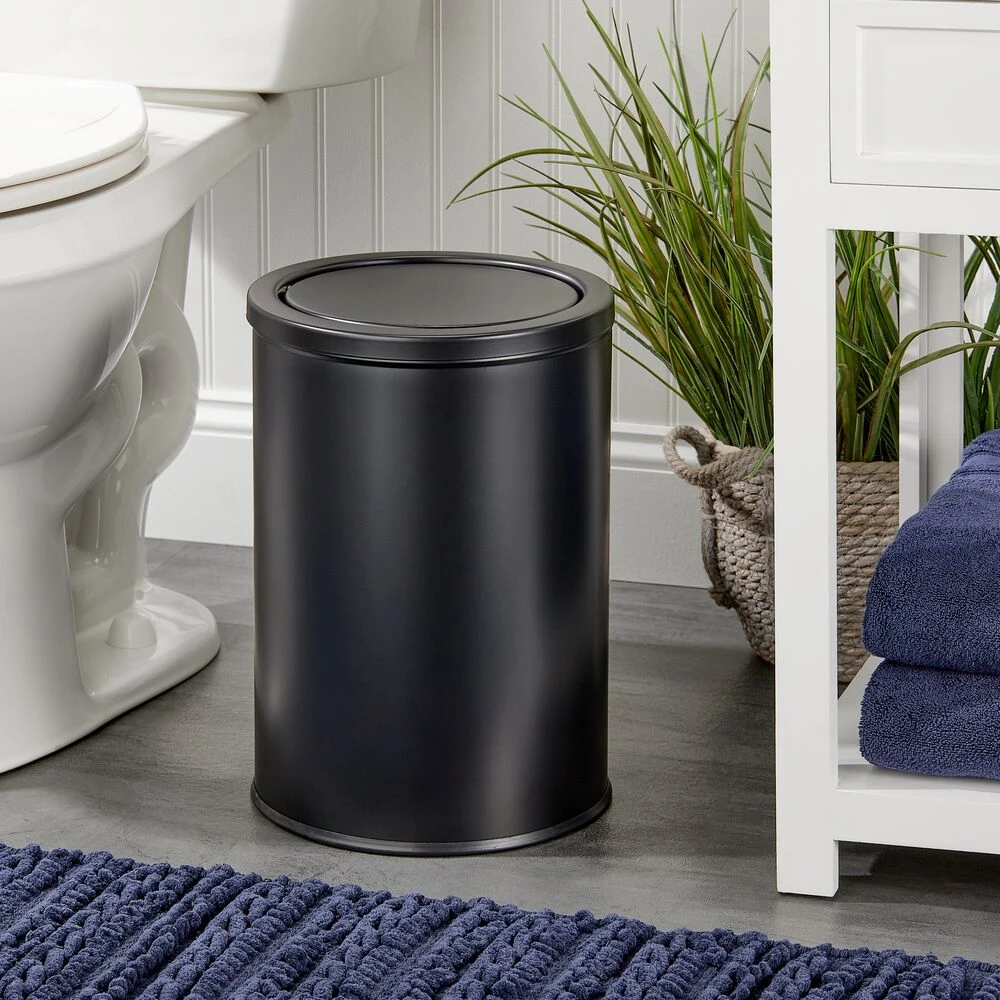 Our swing lid trash can is ideal for any bathroom, home office, or any other small space. Slim, space-efficient profile fits perfectly inside cabinets or under counters while providing ample space to store and contain waste. Durable construction is easy to clean and features a removable lid that comes off easily to empty the bin.