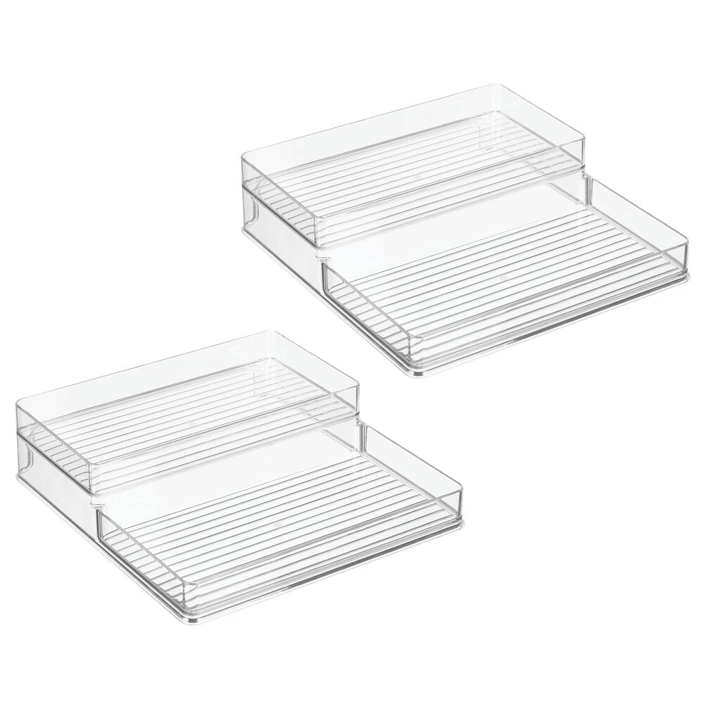 The raised design of our 2-Tier Shelf Organizer keeps your favorite herbs easily accessible by creating a better vantage point inside cabinets. Put spices on full display with two generously sized shelves that allow you to quickly grab what you need. This organizer pulls double duty by sorting vitamins and medicine bottles in bathrooms.