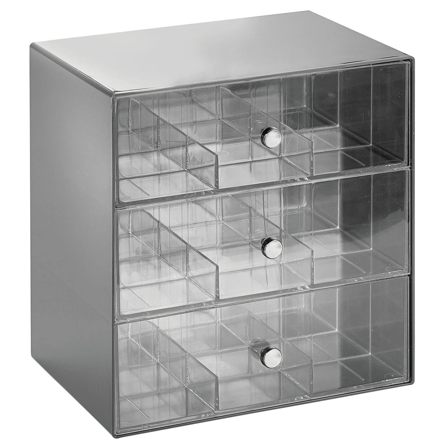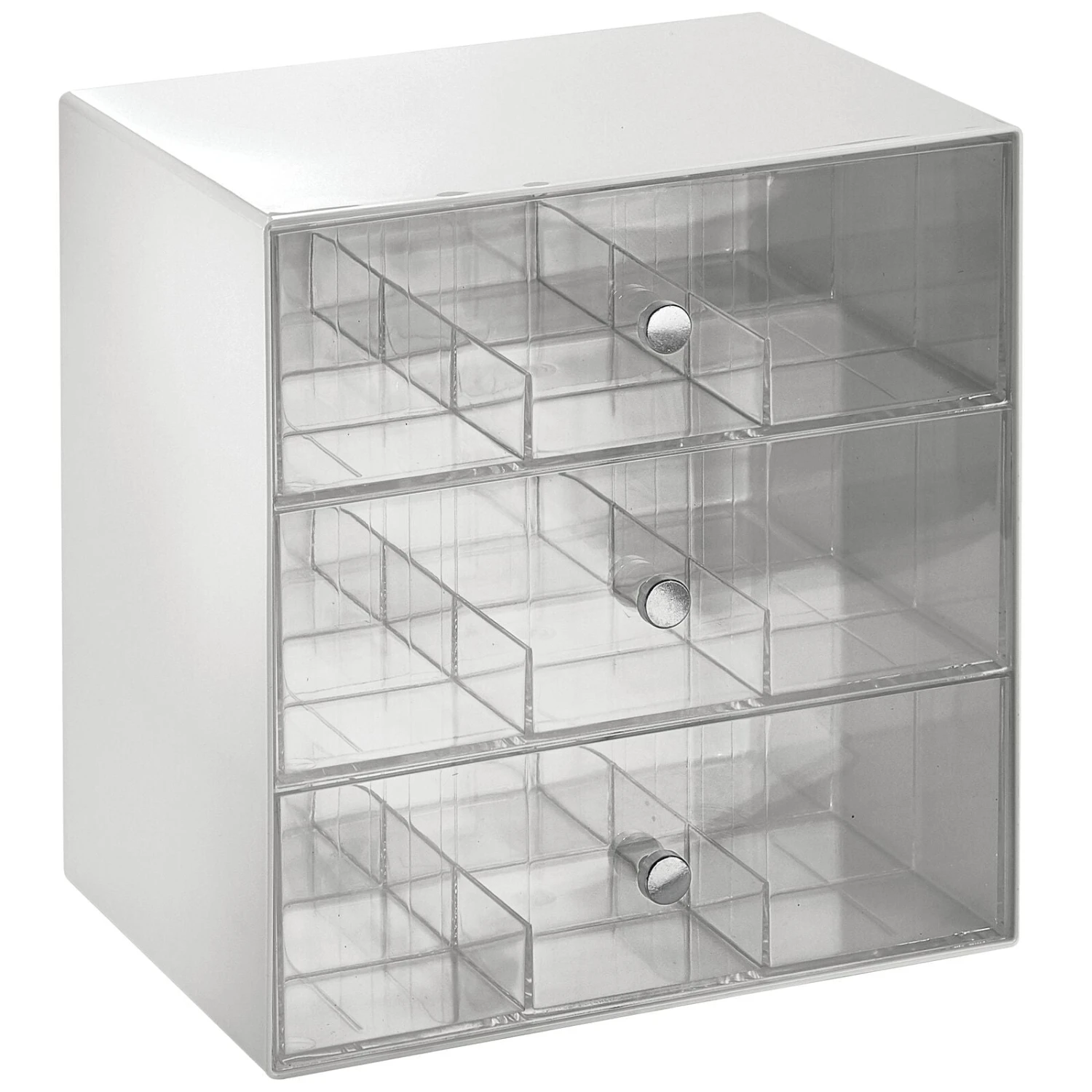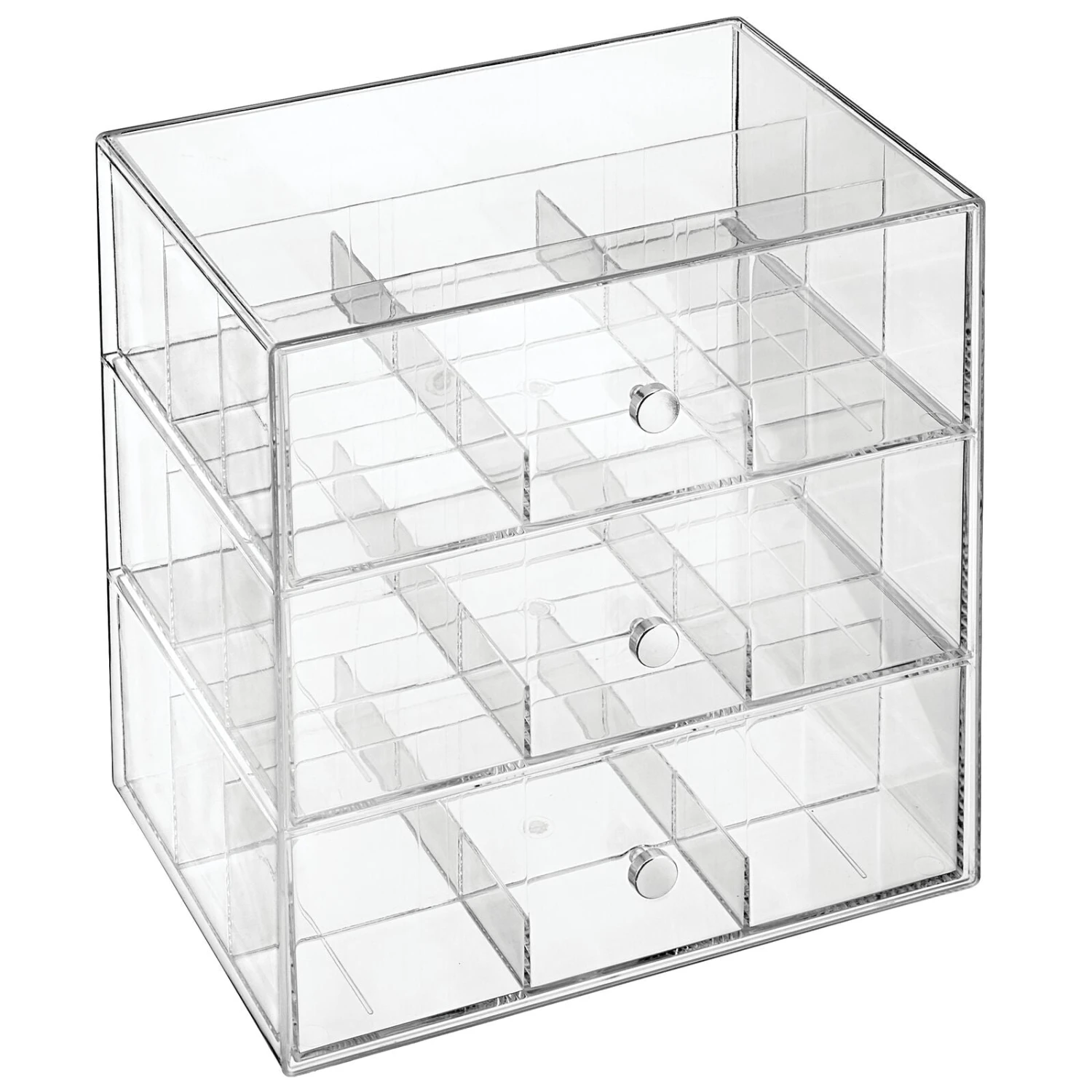 Combat countertop clutter with our 3-Drawer Stackable Kitchen Organizer. Three-tier organizer features a front knob and clear, pull-out drawers that hold tea bags and other small items. Each drawer features nine permanent compartments to eliminate bulky tea boxes on counters. Stackable design can be used together or separately for custom storage.