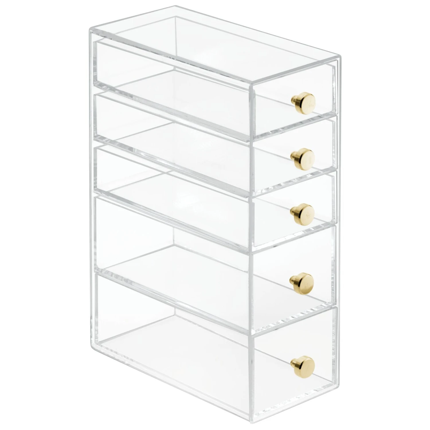 Stow things out of sight with our 5-Drawer Stackable Organizer and eliminate product overflow on countertops. Five narrow pull-out drawers create a space for often reached-for cosmetics and an accenting chrome knob makes opening each drawer effortless. Stack organizers vertically or use them side-by-side and create a more efficient beauty routine.