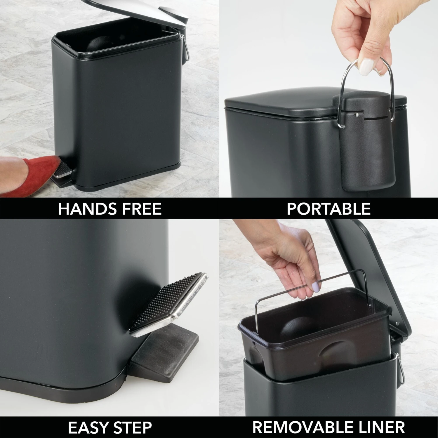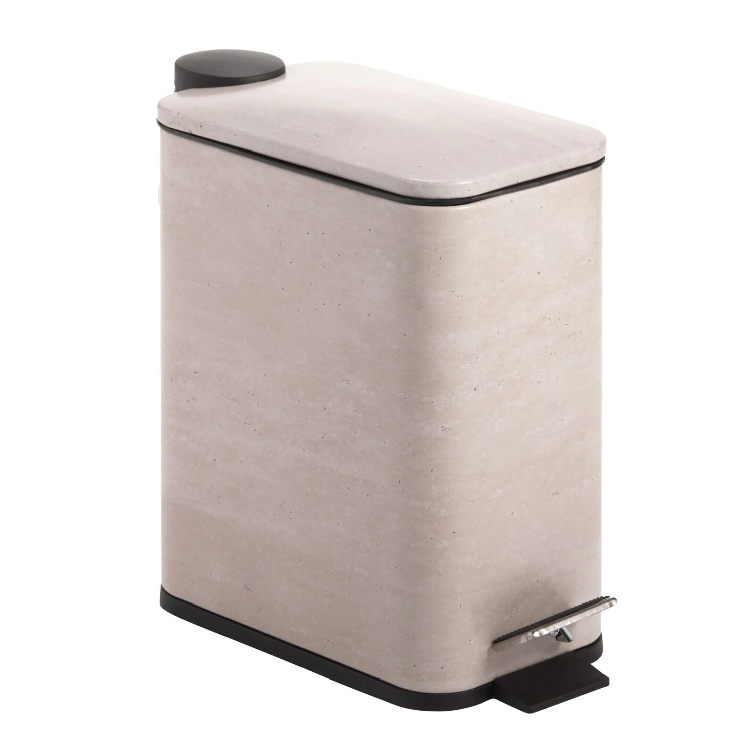 This lidded step can offers a touchless solution for keeping hands clean while disposing of waste. Perfectly sized for tight spaces, this trash can fits inside cabinets or next to sinks while containing refuse. The quiet step pedal provides effortless trash disposal, and the removable liner bucket allows you to easily empty the bin.