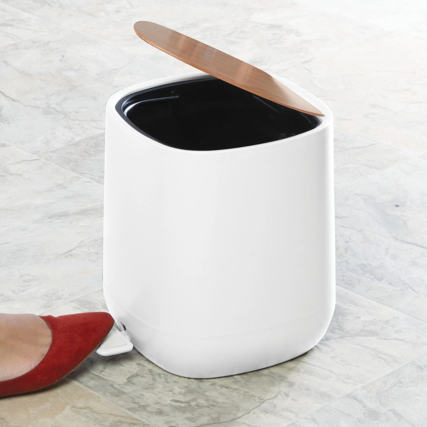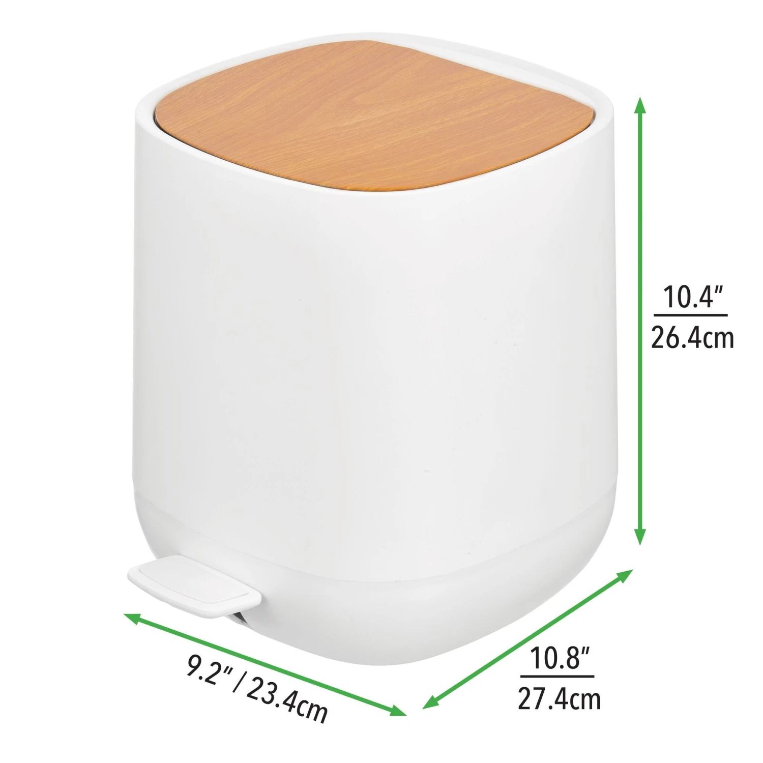 This household essential gets an elevated look thanks to the accenting bamboo lid on this step trash can. Slim profile fits inside cabinets or next to sinks while providing space to contain waste. The quiet step pedal offers a touchless and effortless way to dispose of trash, and the removable liner bucket allows you to easily empty the bin.