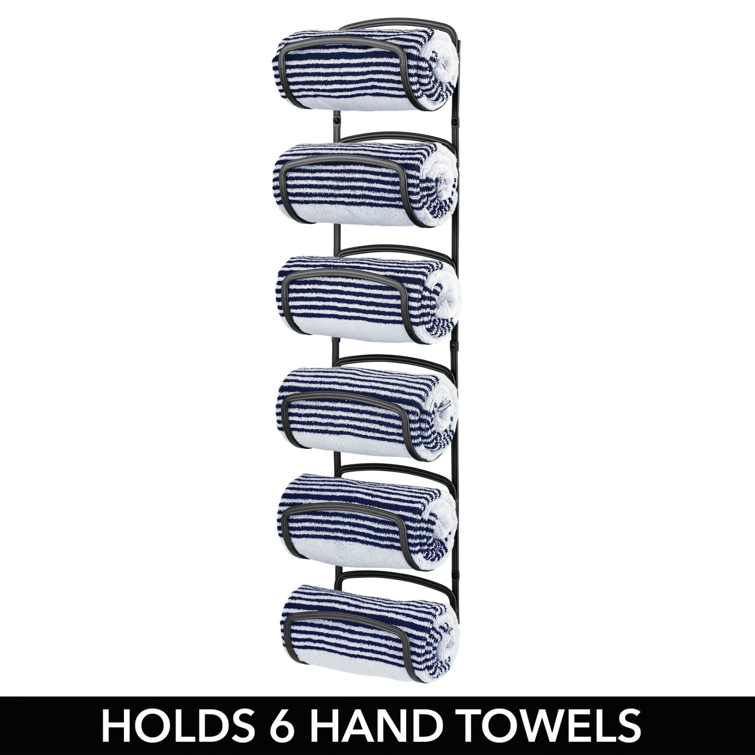 Bring the spa vibes home while adding essential storage to any bath space with open design of this six-tier bathroom towel rack that mounts to any wall with the included hardware and easy-to-follow instructions. Vertical arms keep towels at the ready while utilizing unused wall space.