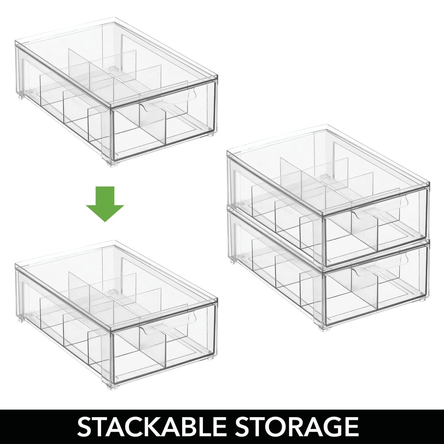 Bring order to crowded kitchens with our 8-Section Storage Drawer. The pull-out drawer opens to eight divided compartments, creating a sleek place to store everything from sugar packets to tea bags and more. For a more streamlined storage solution, the stacking feature utilizes previously wasted vertical space on open shelves or inside cabinets.