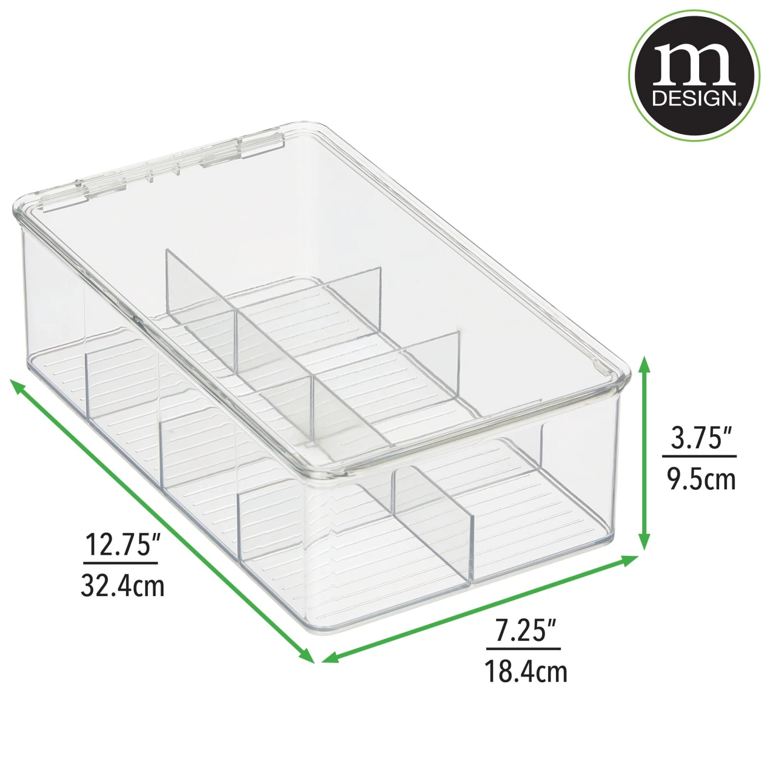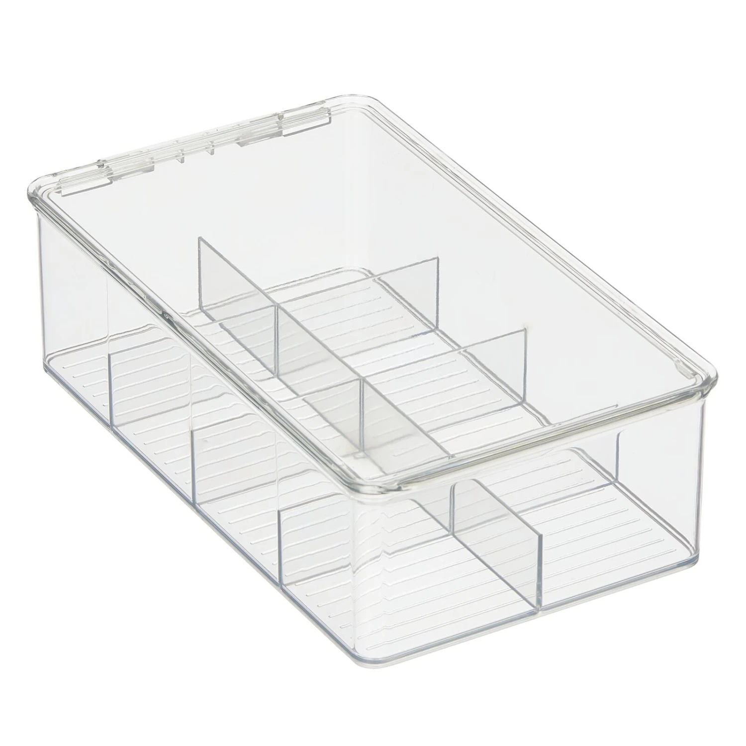 Our 8-Section Tea Organizer helps streamline crowded kitchen spaces by keeping go-to items like sugar packets, sweeteners, and tea bags sorted and organized with permanently divided compartments. Easy-open hinged lid allows you to stack and store to utilize vertical space, while the bin’s size and shape fit inside any cabinet or pantry shelf.