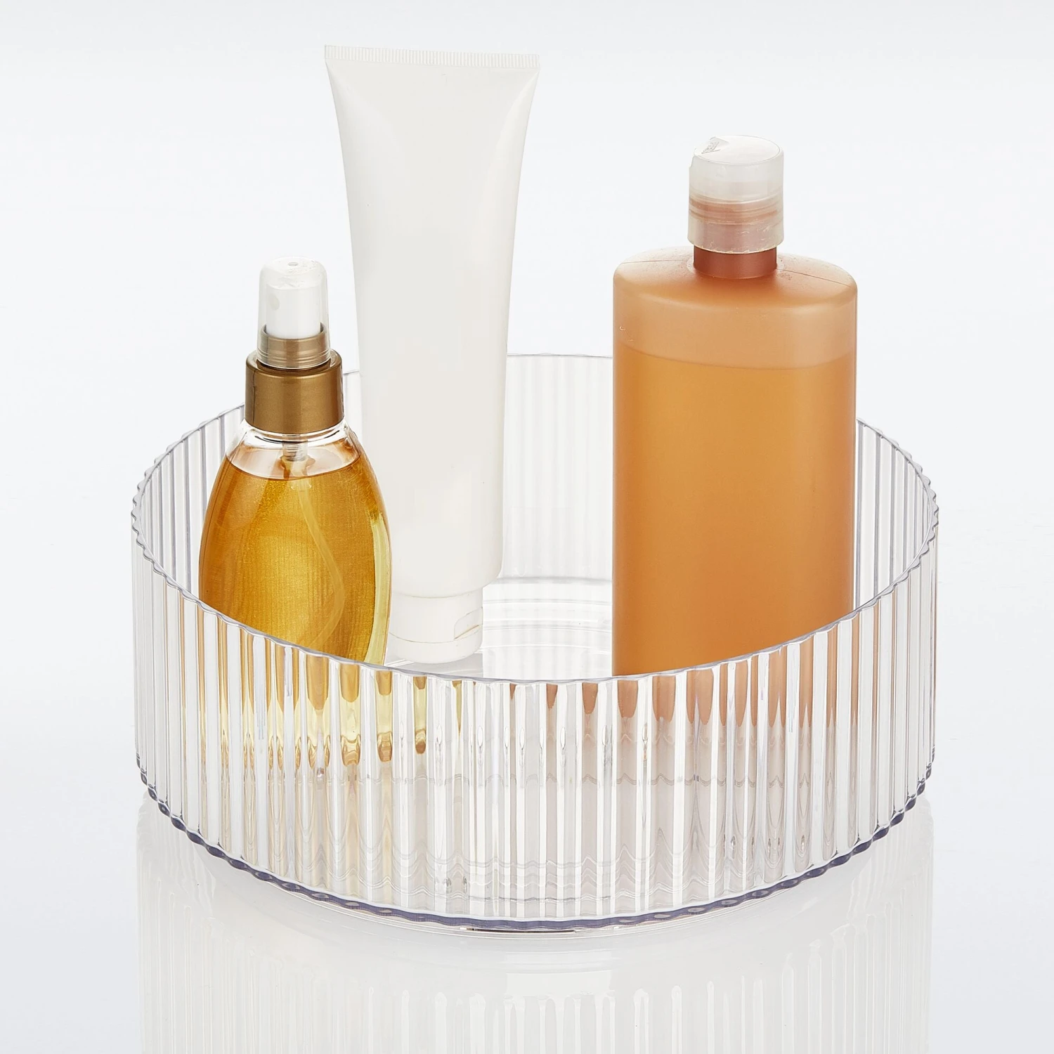 Slim enough to fit inside any cabinet or nest on any pantry shelf, our Fluted Lazy Susan Turntable keeps inventory of what you have while maximizing space where items can be hard to reach. Raised fluted wall keeps items from falling even in motion. This rotating organizer provides storage for spices, seasonings, and other go-to kitchen items.