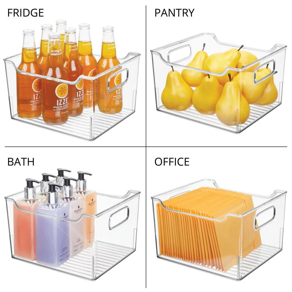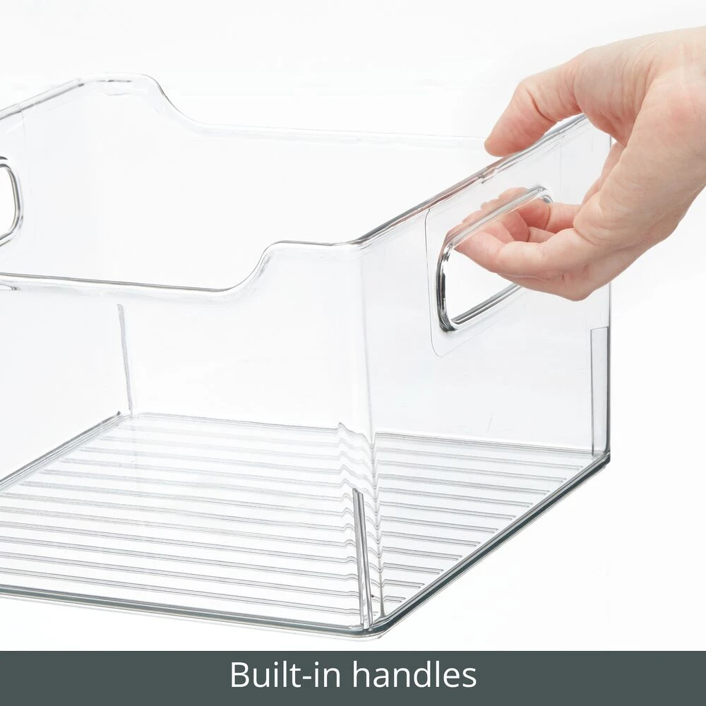 Organize just about anything with our durable storage bins. Functional and incredibly convenient, the open-top concept grants immediate reach-in access while allowing you the flexibility to use multiple bins together or separately for custom storage. The built-in handles make it easy to move the bin from fridge to table or wherever you need.