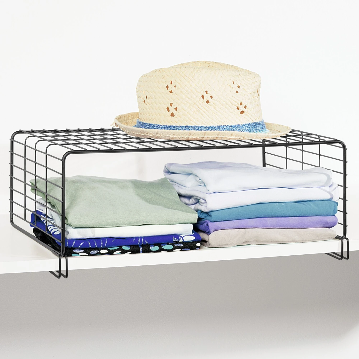 This closet storage shelf makes the most of the unused storage space in your bedroom, linen shelves, hallways closets, and deep vanity cupboards. The two-tier design makes it easy to maximize small spaces by providing double the storage. Easily install by simply sliding onto any wood or solid shelf for convenient vertical storage around your home.