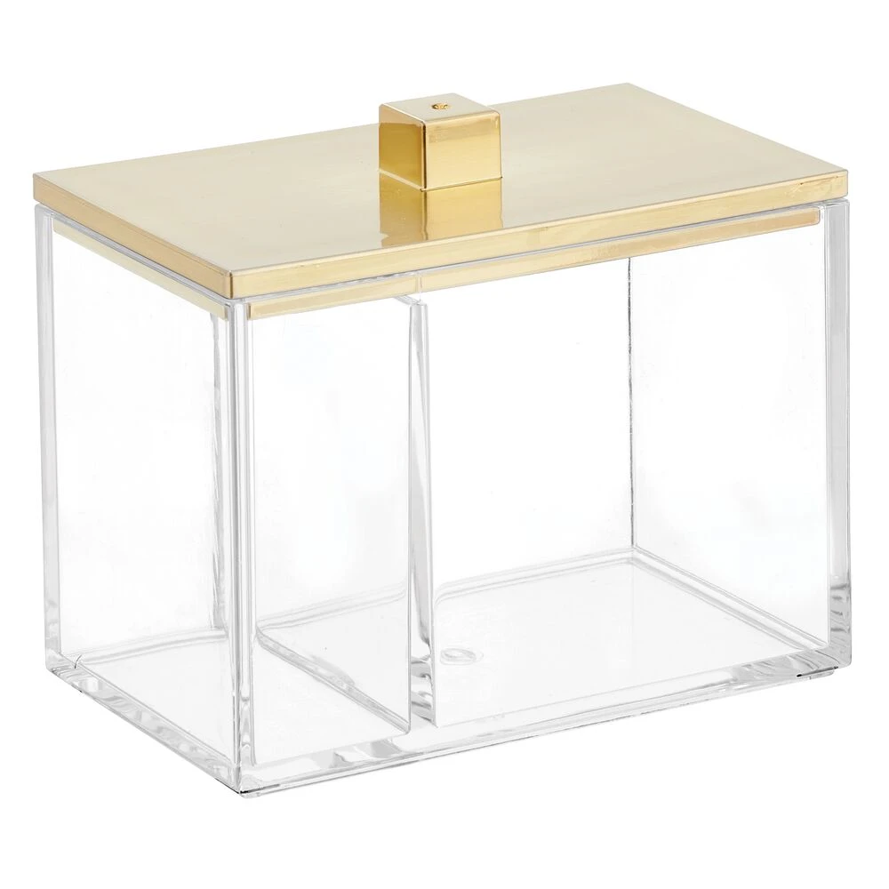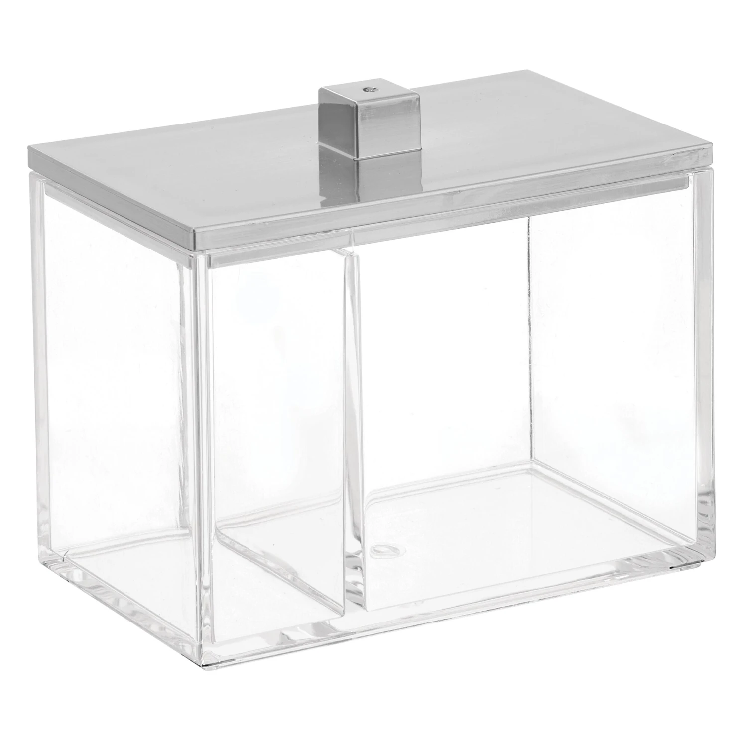 Create a more put-together counter with our Divided Bathroom Canister. Our counter-worthy canister allows you to store bathroom basics like cotton balls and makeup pads in two divided sections keeping contents visible and separated. Complete with a nesting lid, these sleek canisters provide a clean, modern look to your surrounding décor.