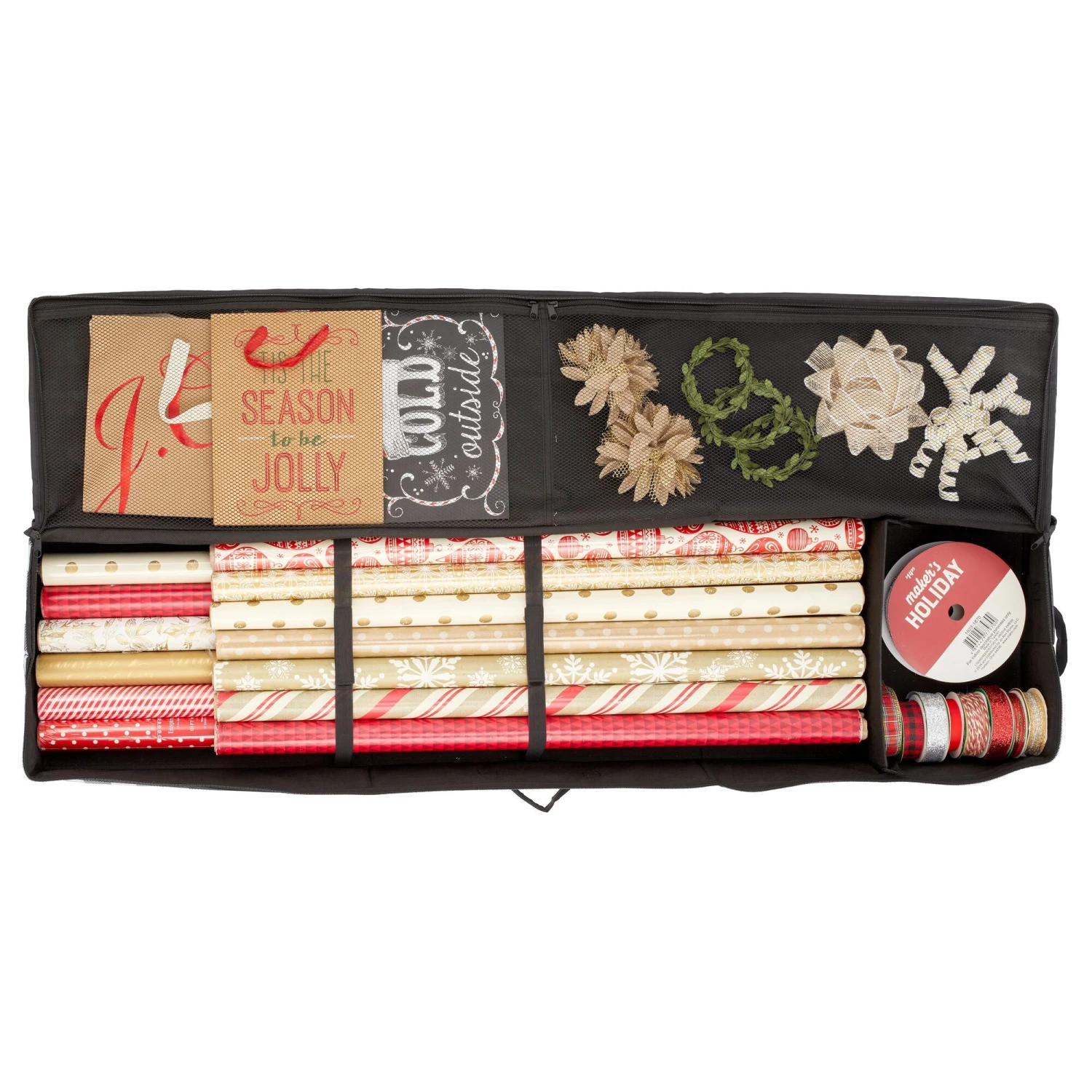 This all-in-one gift-wrapping storage solution is perfect for slipping under any bed or sofa. The front handle provides convenience when adding final touches to your present, and the dividers and inside pockets allow you to store ribbons, bows, and more. Plus, this extra-long length has room to store jumbo rolls of wrapping paper.