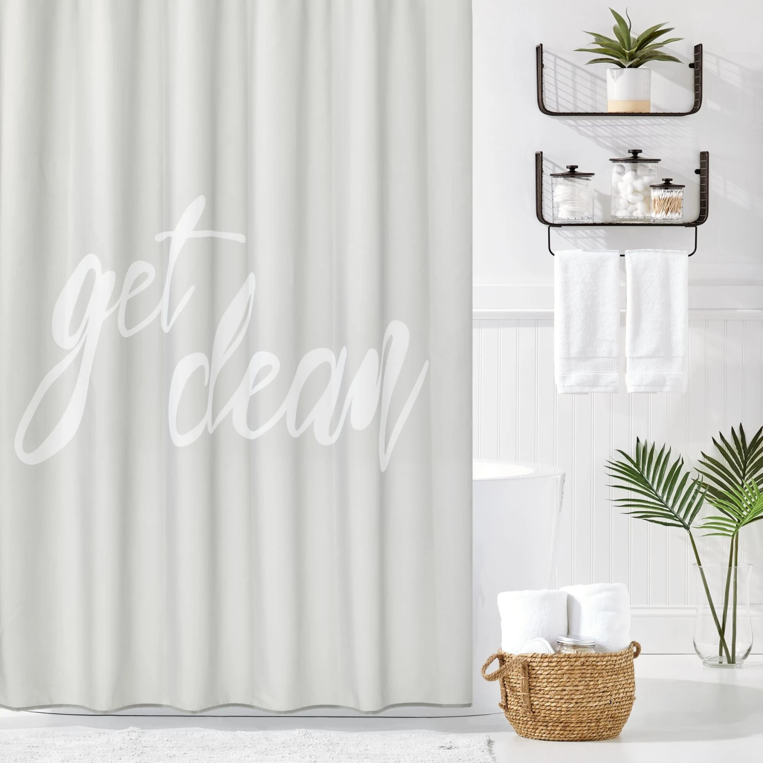 Enjoy some sudsy fun with this cheeky shower curtain. Woven from long-lasting polyester that drapes beautifully, this amusing quote makes a splash in any guest bathroom or kids’ bath space. A shower curtain liner is recommended.