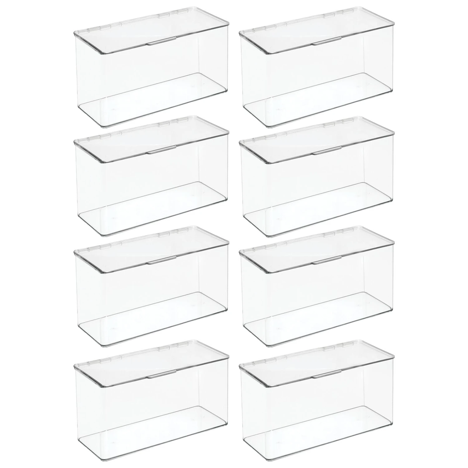 Keep everything from baking essentials to juice boxes neatly contained in our Hinged-Lid Storage Boxes. Lids are hinged, making opening and closing simple while keeping contents protected and accessible. Inventory belongings is easy thanks to the transparent design, and bins stack securely, optimizing shelf space and creating storage anywhere you need.