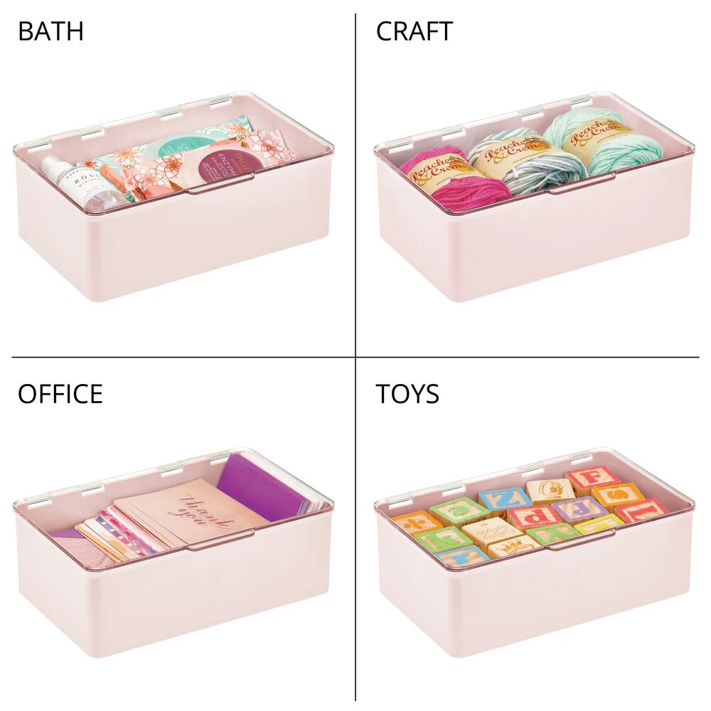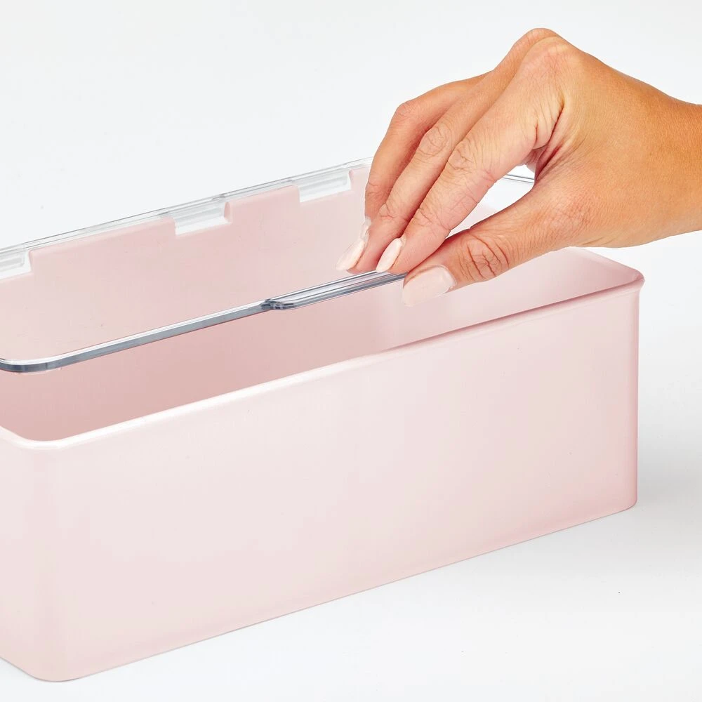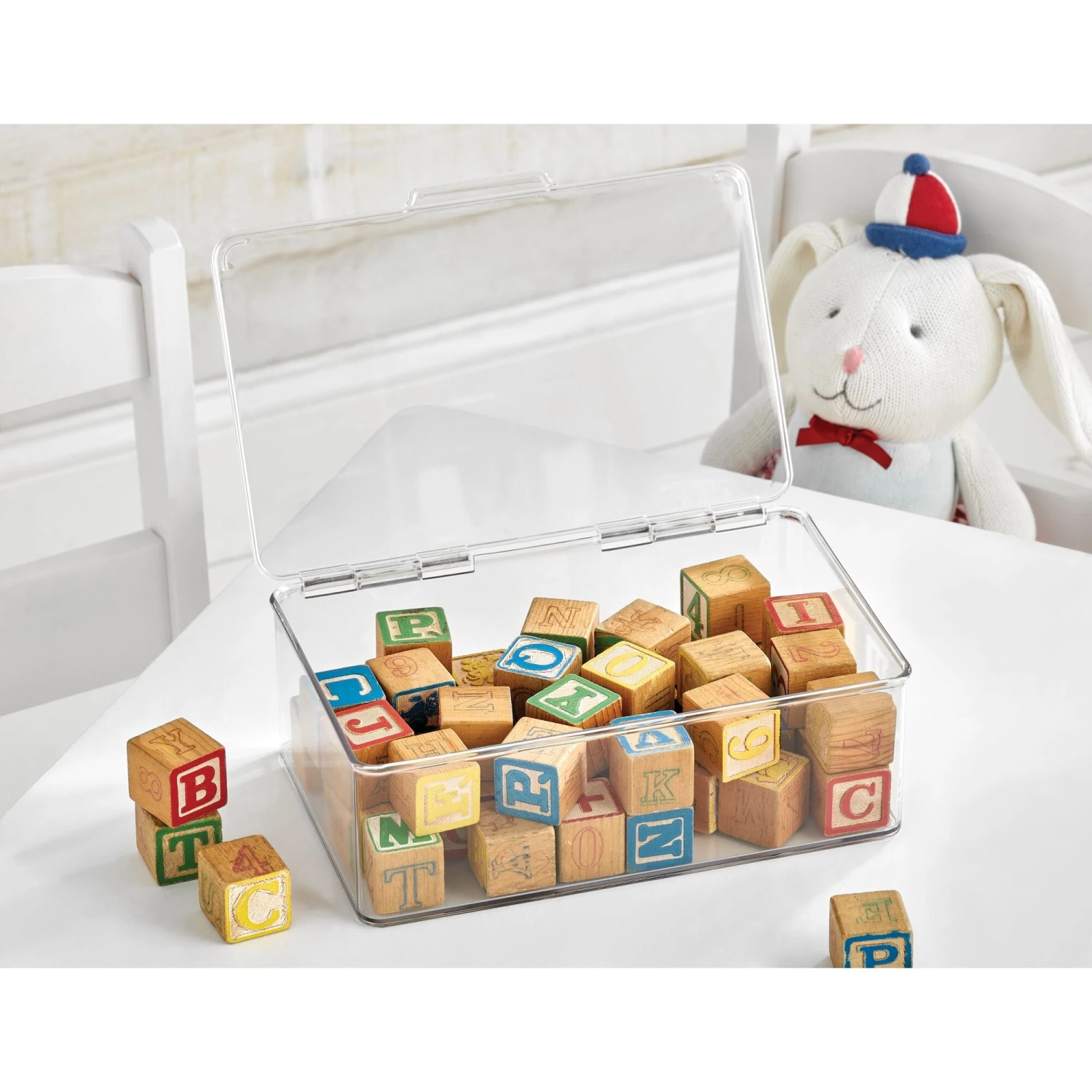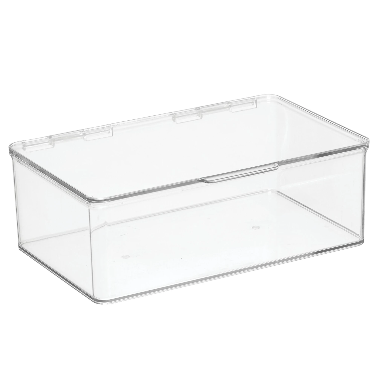 Mitigate mess around the home with our Hinged-Lid Storage Box. Lids are hinged, making opening and closing easy while keeping contents protected and close at hand. Bins stack securely, optimizing shelf space. This clear, versatile storage option organizes essentials, creating a sophisticated solution anywhere you need.