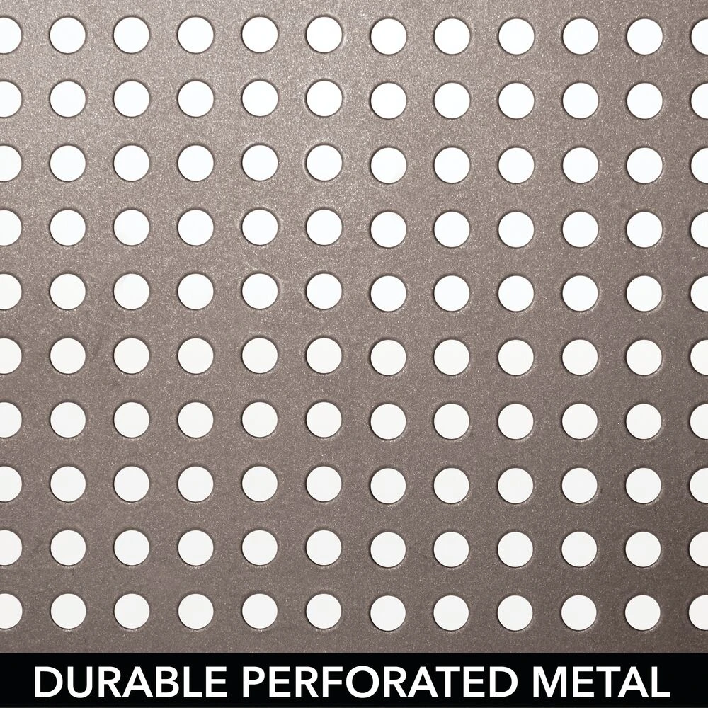 Get creative with storage space with our Metal Kitchen Cabinet Shelf Riser. Utilize vertical space between shelves in any pantry or cabinet with this two-tier design that allows you to rest items on top and underneath. Each riser features a durable perforated metal design and non-slip feet to keep the unit secure and in place.
