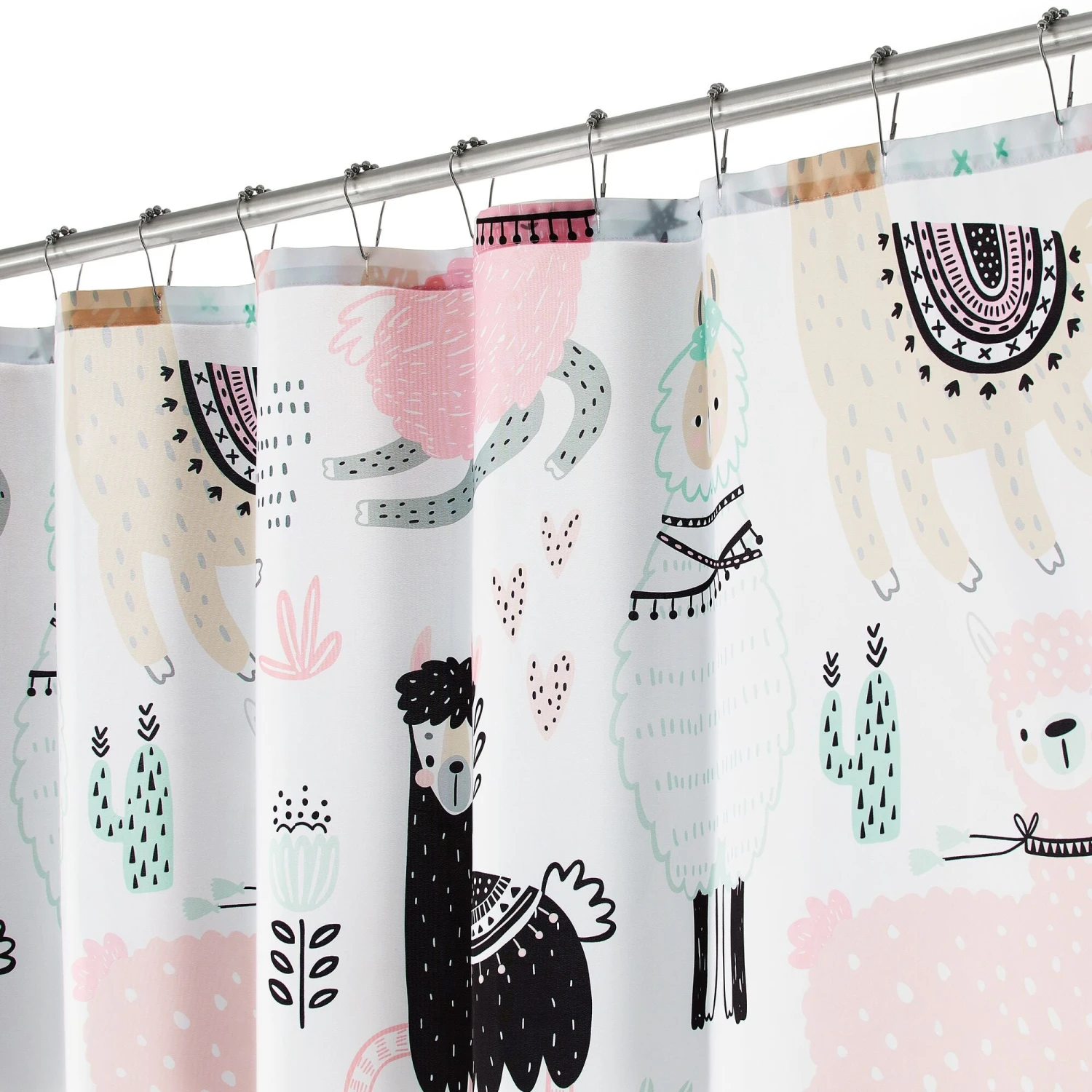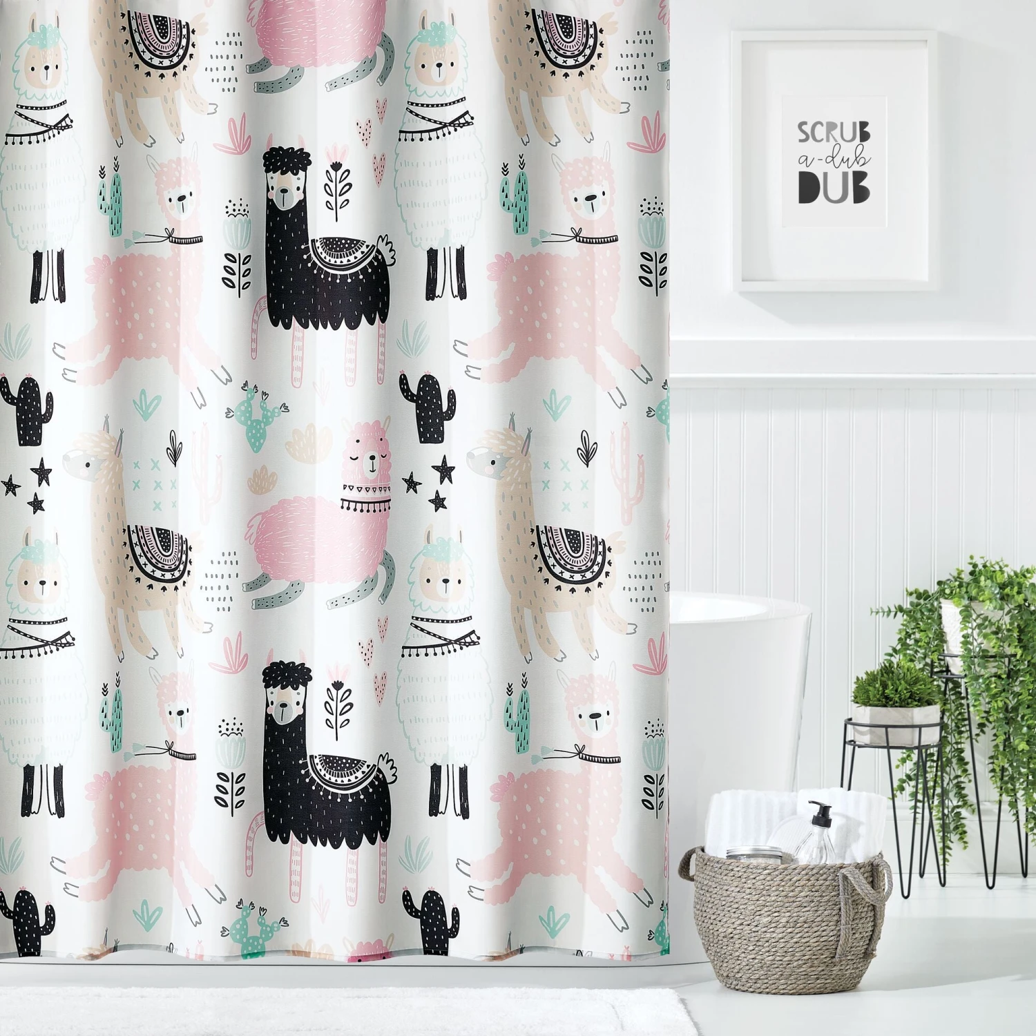 Make bath time more fun with this animal-inspired llama print shower curtain. Crafted from long-lasting polyester that drapes beautifully, add whimsy to any kids’ bath or guest bath with leaping llamas in colorful hues. A shower curtain liner is recommended.