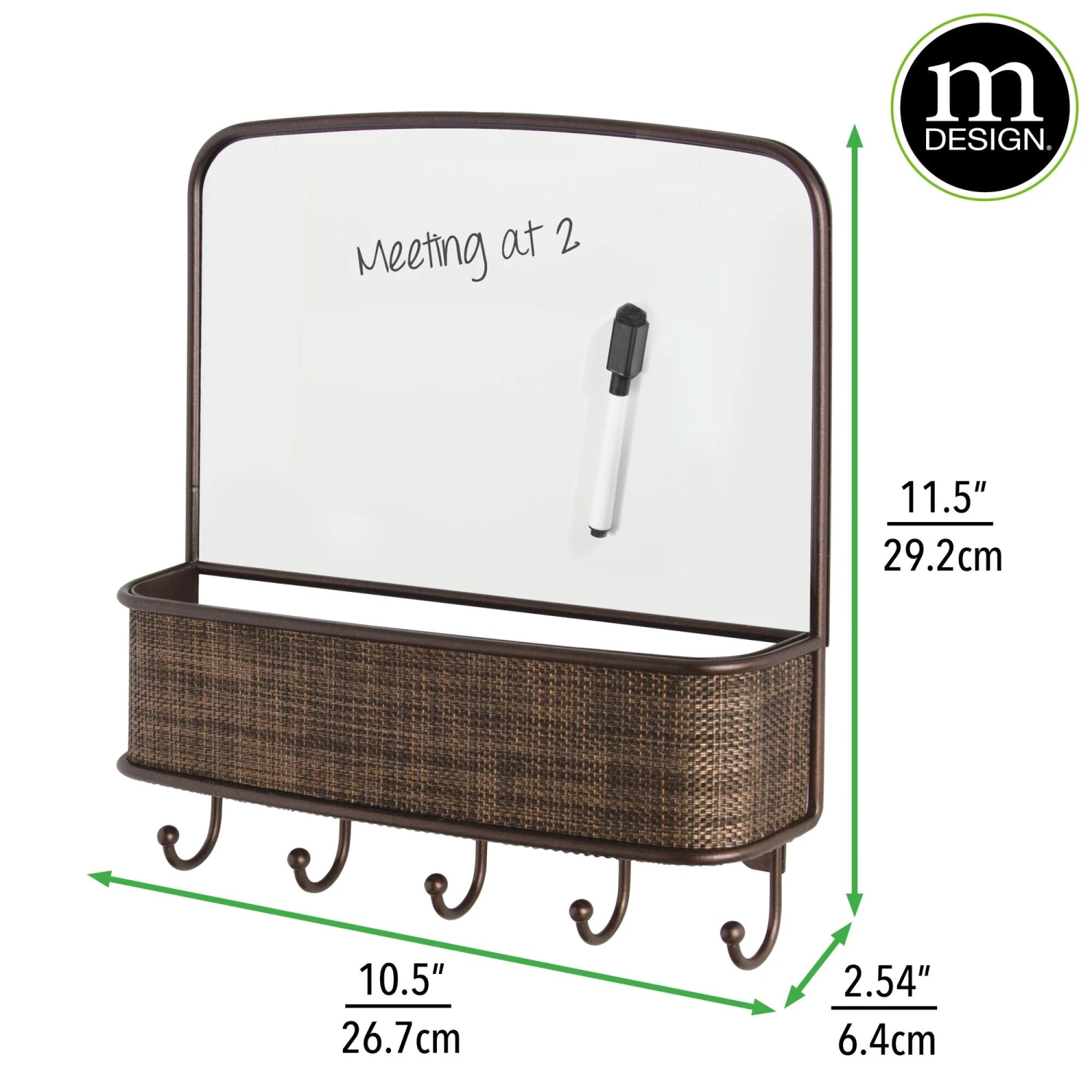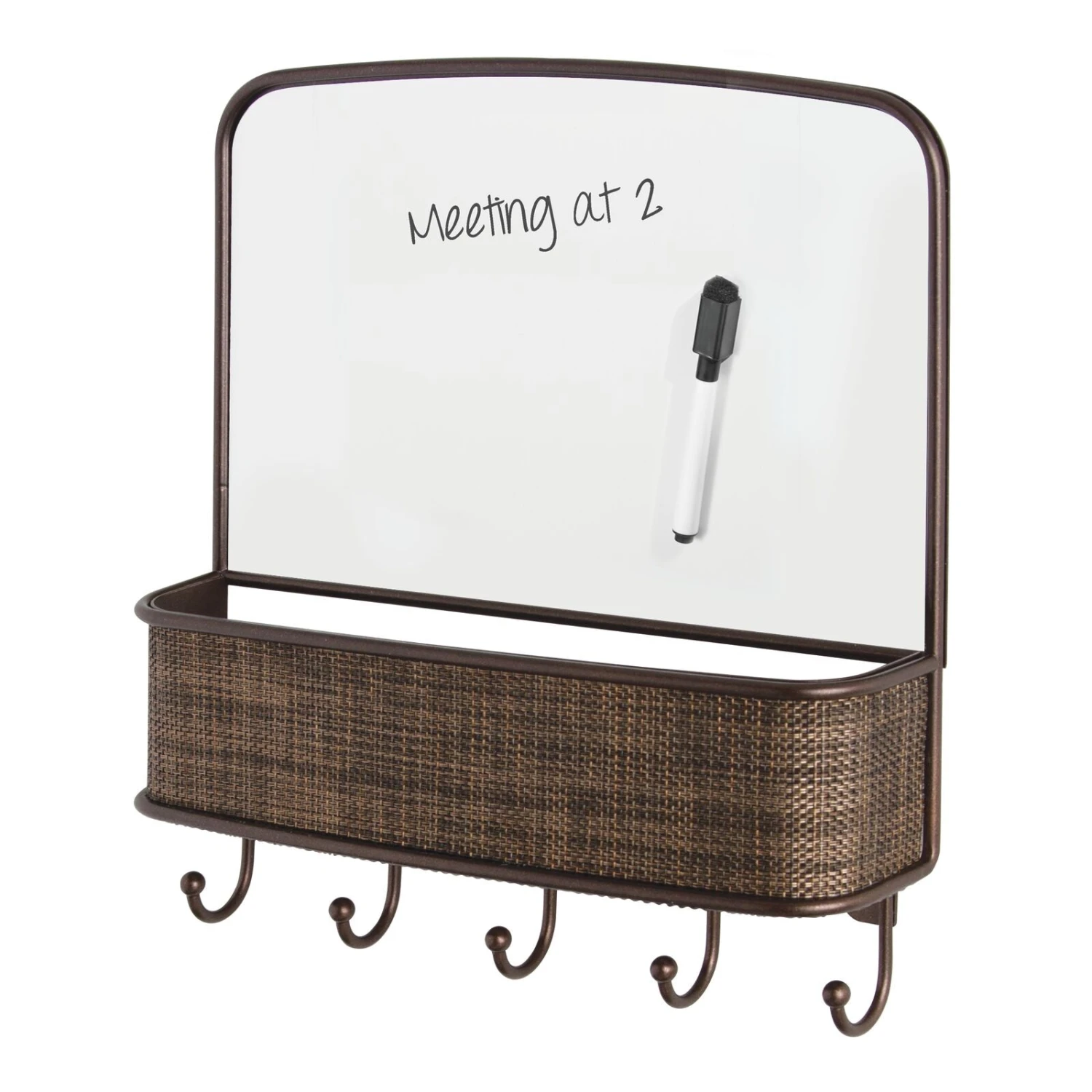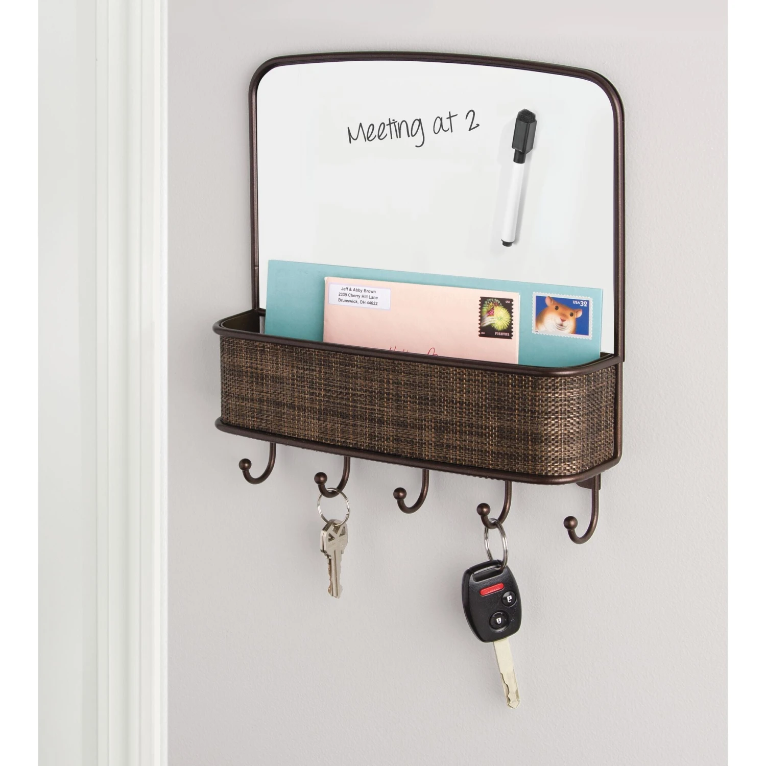 Corral your accessories in one convenient place and scribble down important info with this combination dry-erase board, mail holder, and key rack. The large basket holds your mail in one spot, and hooks eliminate searching for lost keys. Leave notes on the dry-erase board with the included marker, which magnetically attaches to the board.