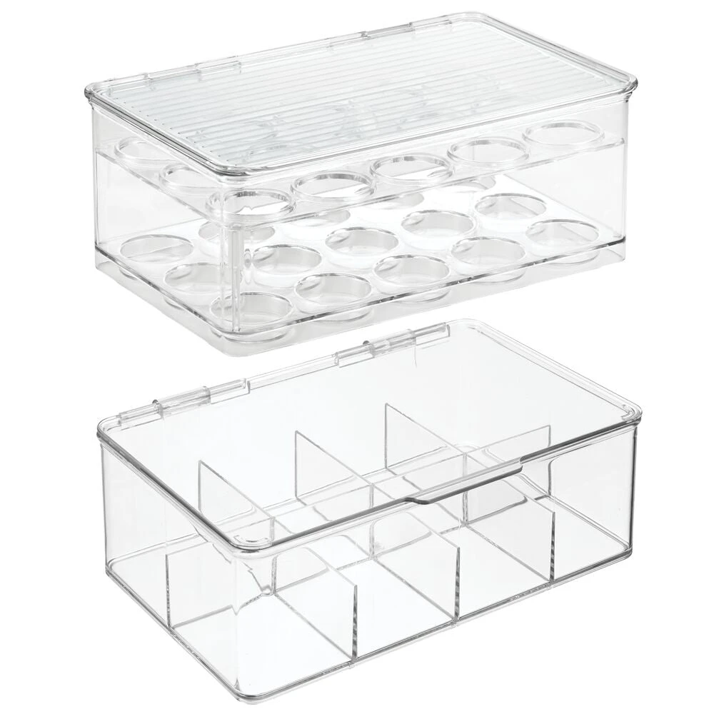 Create the ultimate drink station with our Coffee Pod and Tea Bag Storage Set. This two-piece set includes organization for coffee pods with fifteen individual compartments and eight compartments to sort and store your favorite tea bags. Each organizer features an easy-open hinged lid, allowing you to stack and store and make use of vertical space.