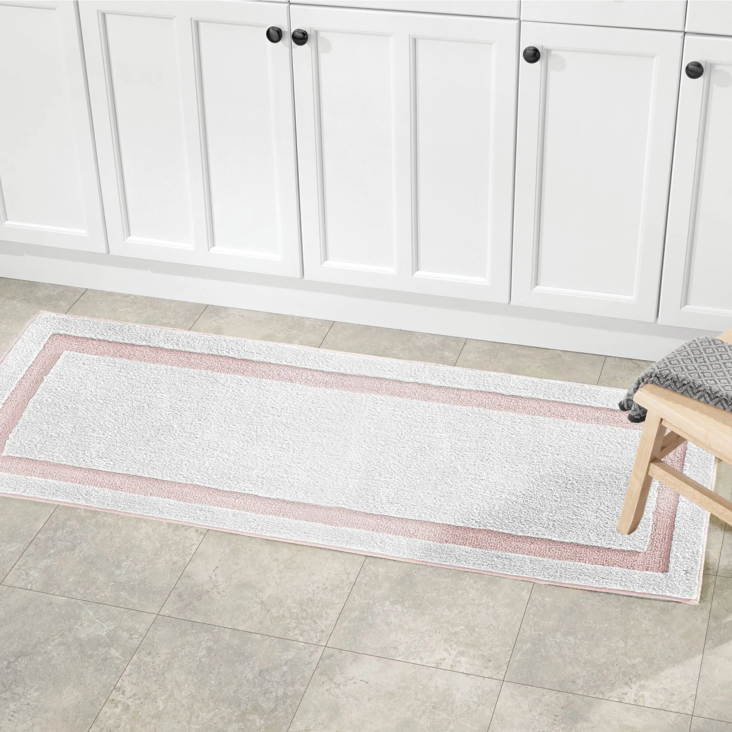 Create a luxurious bath ritual with this elevated bath runner that showcases a colorful border that pairs well with your towels and décor for added style. This soft foundation provides a comfortable place to stand after you step out of the shower or fits between Jack and Jill sinks, bringing an incredibly soft cushion and absorbent underfoot.