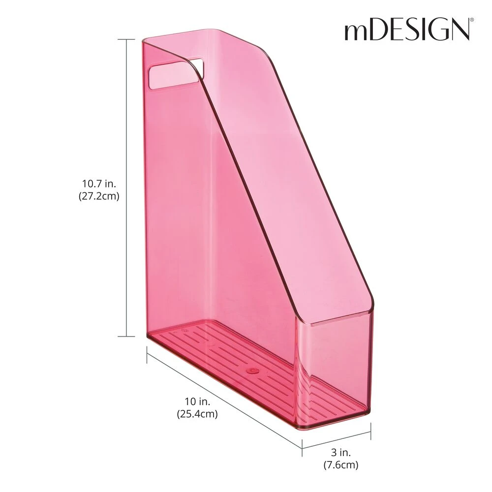 These Office File Organizers bring order to a messy desk. Use these vertical holders to store file folders, notebooks, planners, calendars, and other small items. Grab what you need with the built-in handle. Separate important papers, stationary, mail, and more. Keep your workspace clean while maintaining easy access to essential documents.