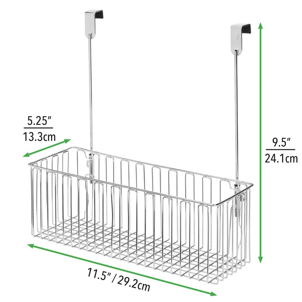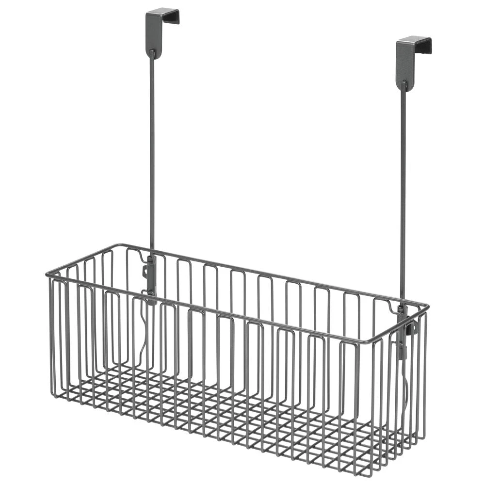 Utilize every square inch of bathroom space with our Over-the-Cabinet Door Basket. The airy, open-wire design keeps everything from bathroom basics to hair and beauty products visible while open-top concept grants immediate reach-in access. To install, simply hang over any cabinet door for instant storage.