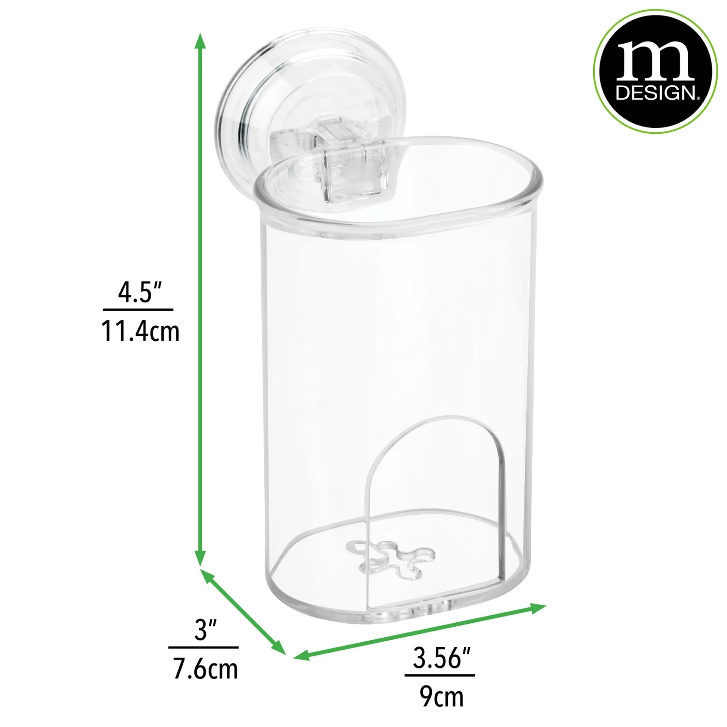 Customize your bathroom storage and take advantage of wall space with this suction toothbrush holder. Simply position the hook, then lift, push, and lock it into place for a hold that lasts with super strong suction. Drainage holes in the bottom of each holder let water flow away so toothbrushes, razors, and more stay clean, dry and ready to use.