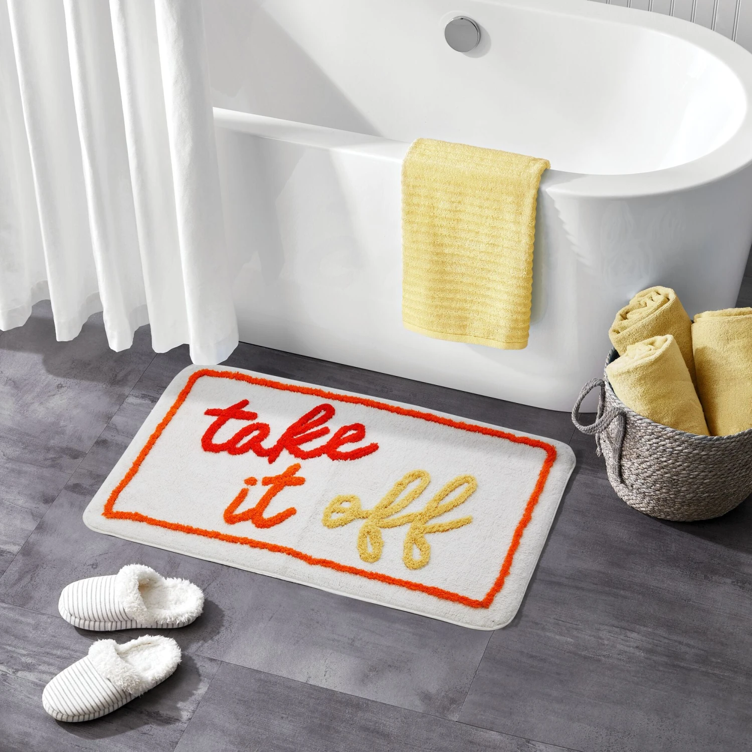 Cheeky and colorful in design, our Take It Off Bath Mat offers a playful accent to any bath space. Crafted from Cotton, this rug is highly absorbent and provides a comfortable place to stand after you get out of the shower or bath.