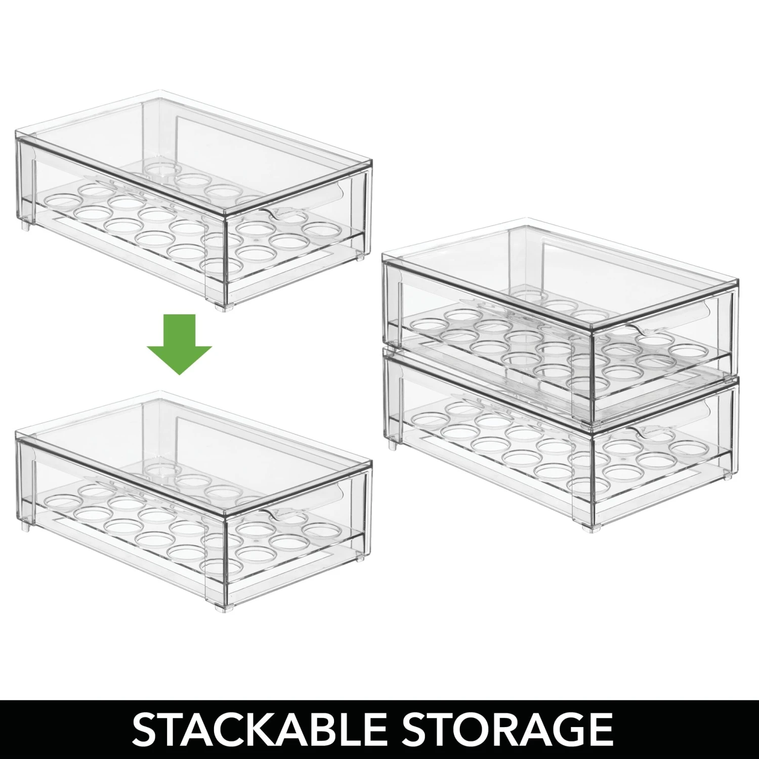 Safe for the fridge or freezer, this egg holder features a pull-out drawer that opens to twenty-four individual slots to store two dozen eggs. The see-through design allows you to inventory eggs and its stackable, shelf-friendly dimensions optimize space. Plus, you can write on the container using a dry-erase marker to note the date of your eggs.
