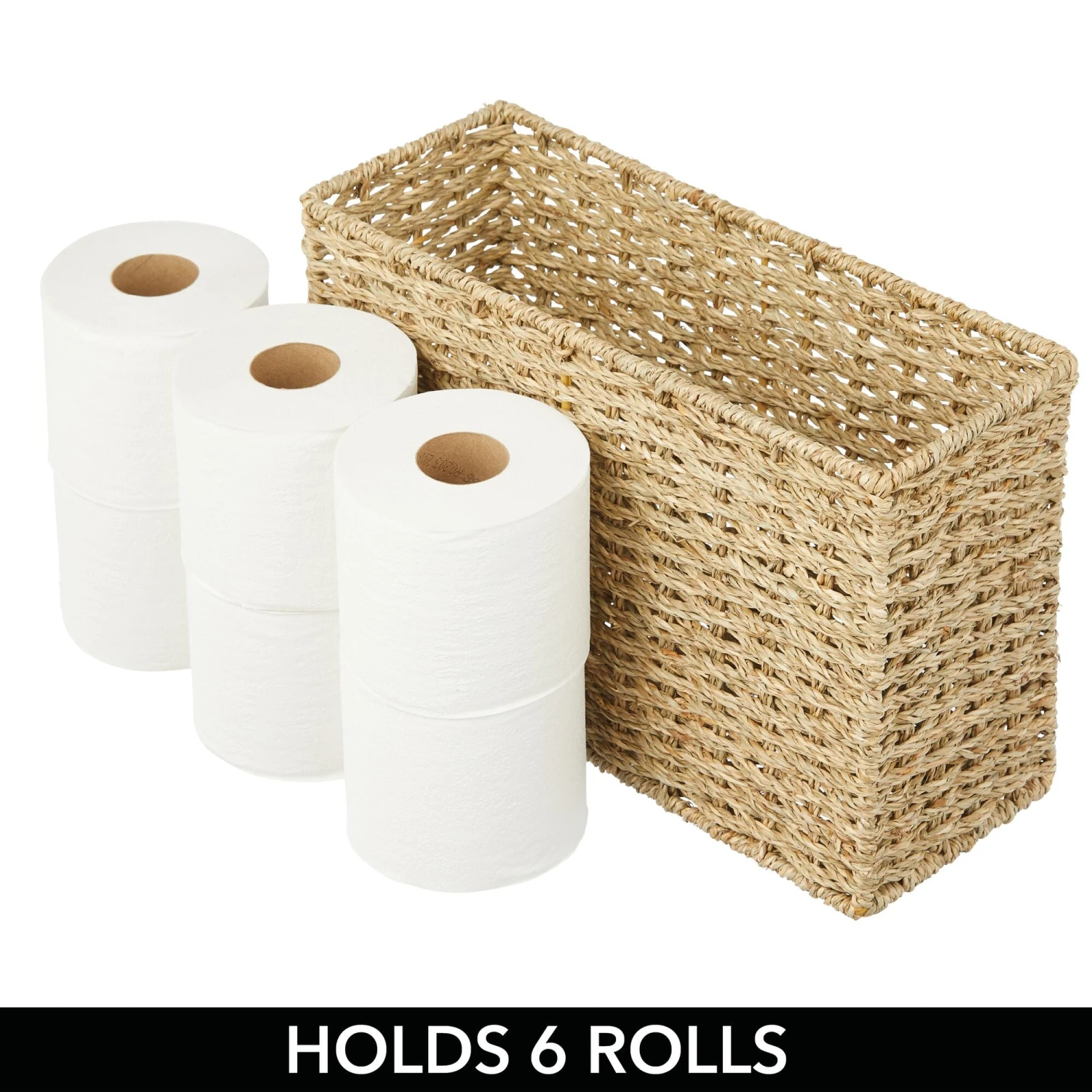 Perfectly sized for resting on top of the toilet tank, our Seagrass Basket is ideal for storing six extra rolls of toilet tissue for a well-stocked bathroom. This natural, woven basket brings a polished look while providing ample space for toiletries, washcloths, and other essentials in your main or guest bath.