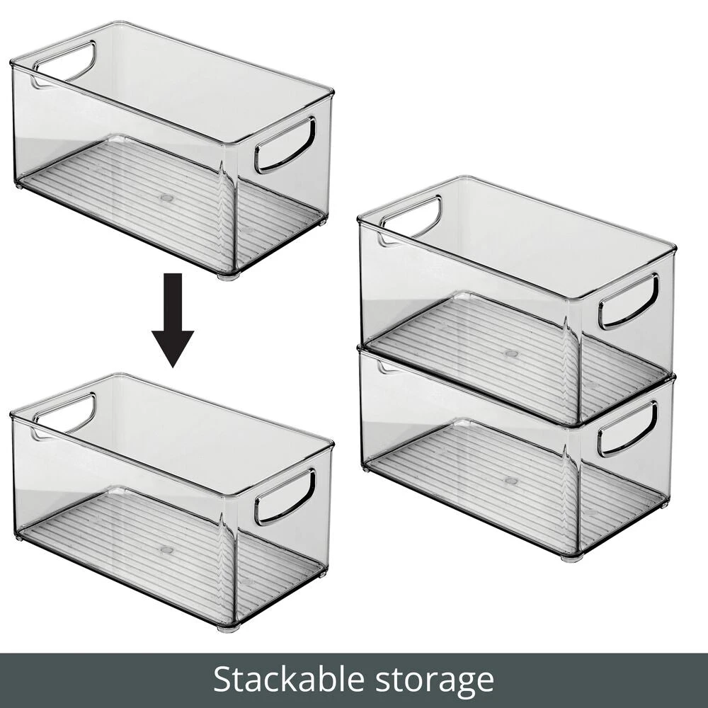 Keep food and pantry items neat and tidy with this kitchen organizer bin. These bins make it simple to store snack foods, condiment bottles, and dry foods on shelves, inside cabinets, and in the fridge or freezer (also fits inside counter-depth refrigerators). Built-in handles make it easy to pull off a shelf and transport items anywhere easily.