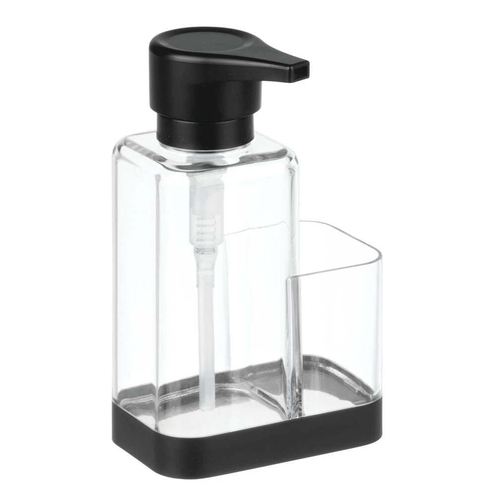 Place this divided soap caddy near any sink area to bring a neat and modern look to any countertop. Easily corral sink accessories with the built-in side caddy that keeps washing essentials accessible and within reach. The removable soap pump head and wide opening make refilling a breeze.