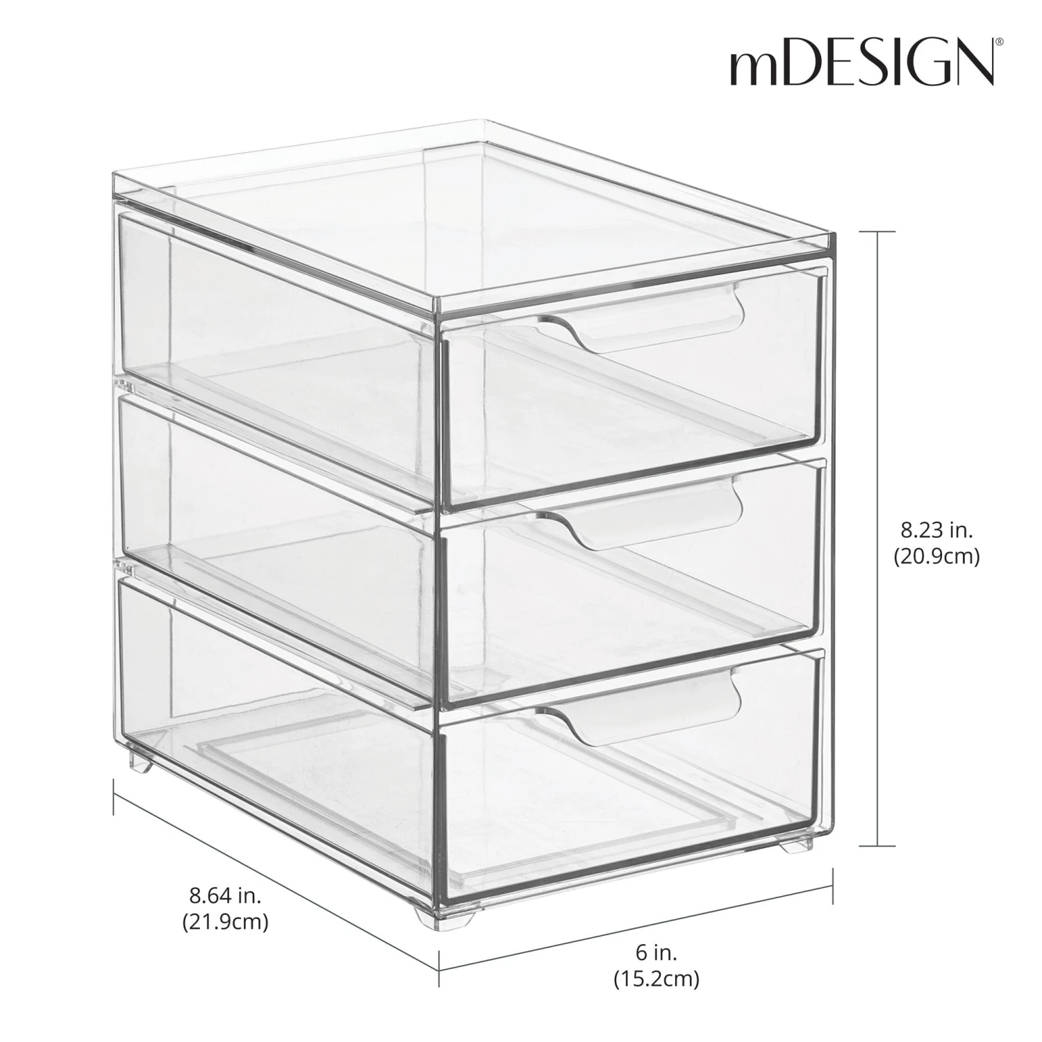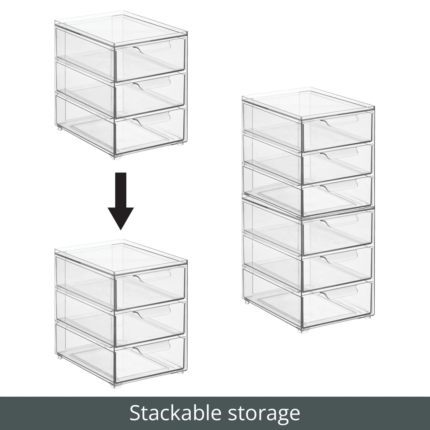 Maximize your storage potential with our Stackable 3-Drawer Organizer. Providing three tiers of storage, each drawer features an easy-grip handle for reach-in access while the clear construction keeps contents visible for easy inventory. Stack multiple units together or use them separately for custom pantry storage.
