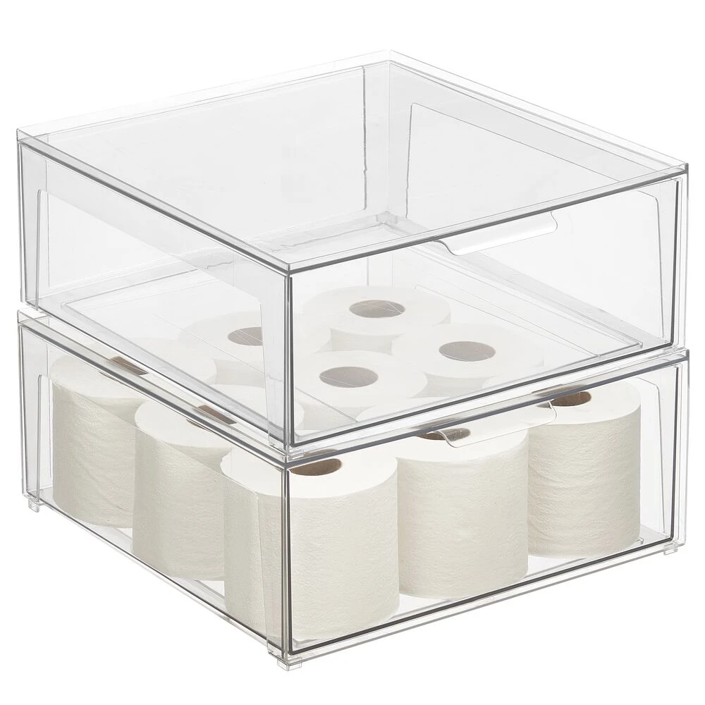 Always find what you’re looking for with our Stackable Storage Drawer. Create a clutter-free look on countertops, under sinks, or inside cabinets, and bring the convenience of drawers to any area that needs organizing. Not just confined to the bathroom, this storage drawer is an excellent tool for organizing essentials throughout the home.