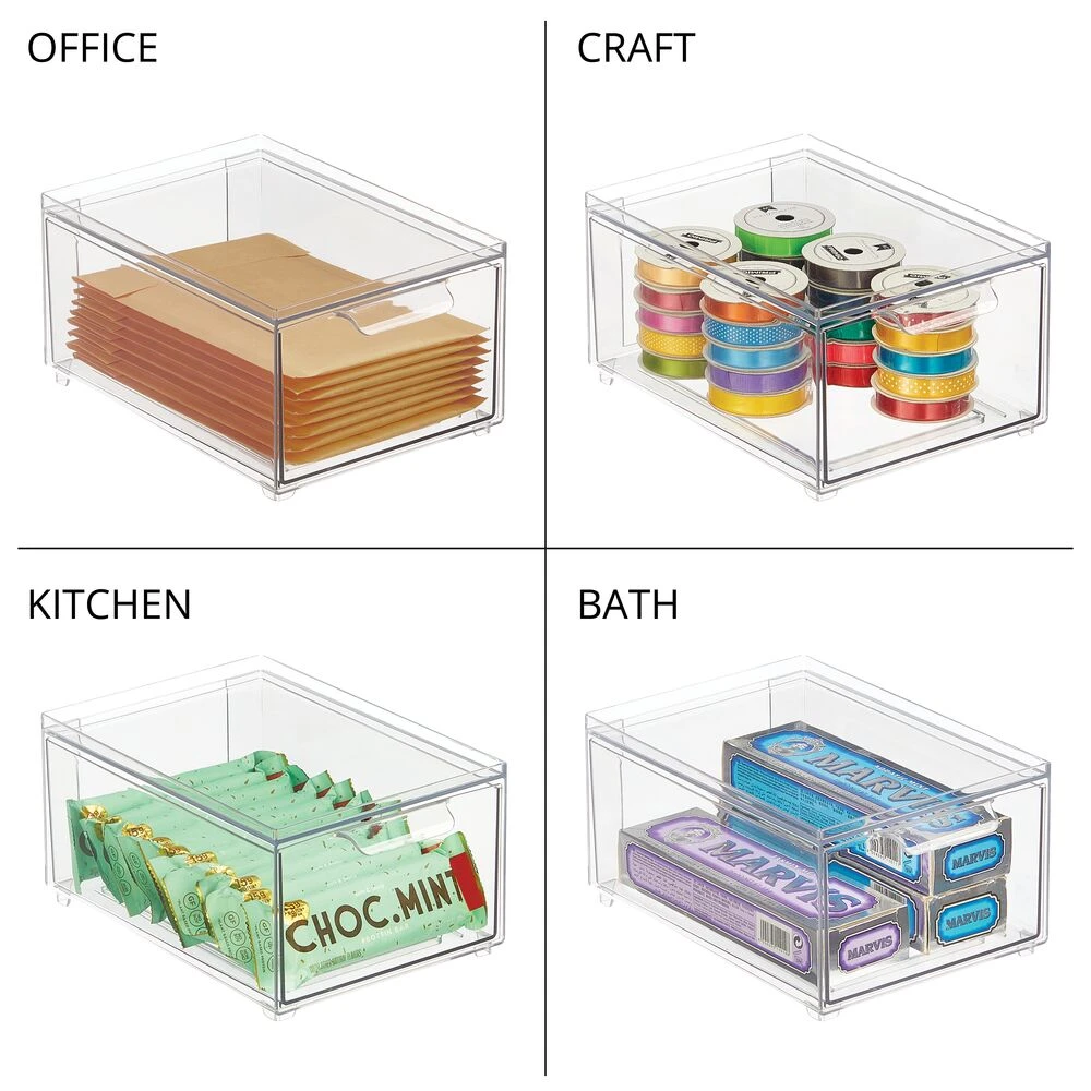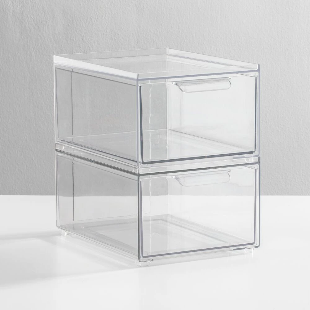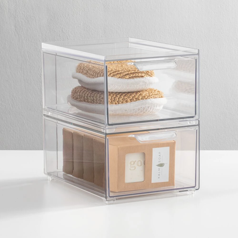 Boost your bathroom’s organizational efficiency with this versatile storage drawer. Crafted from clear plastic, create a clean, clutter-free look on countertops, under the sink, or inside cabinets. This stackable storage drawer is not just confined to the bathroom but is also an excellent tool for organizing essentials throughout the home.