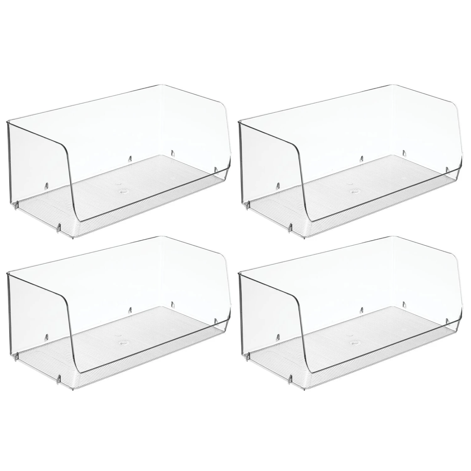 Open Front Kitchen Bins are wonderful for food storage and organization. These open-front baskets let you sort your favorite snacks, drinks, bottles, cans, dry goods and appliances. Stack these bins to maximize storage in cabinets, cupboards, the pantry or countertop. Mix and match with other bins to create customized organization in any kitchen.