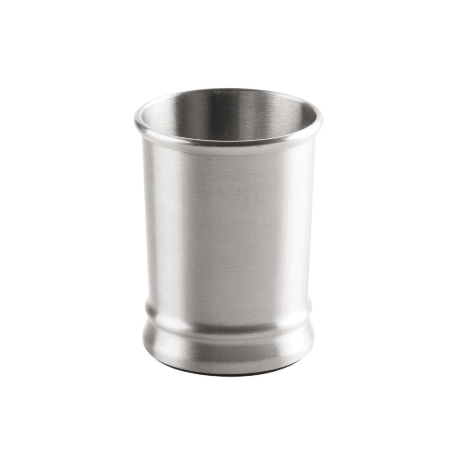 This elevated bath essential boasts a stainless steel profile lending a chic and modern look to your bathroom countertop. The wide mouth allows you to corral everyday essentials to help simplify your morning and bedtime routine. This elevated bath accessory will blend seamlessly with your existing décor.