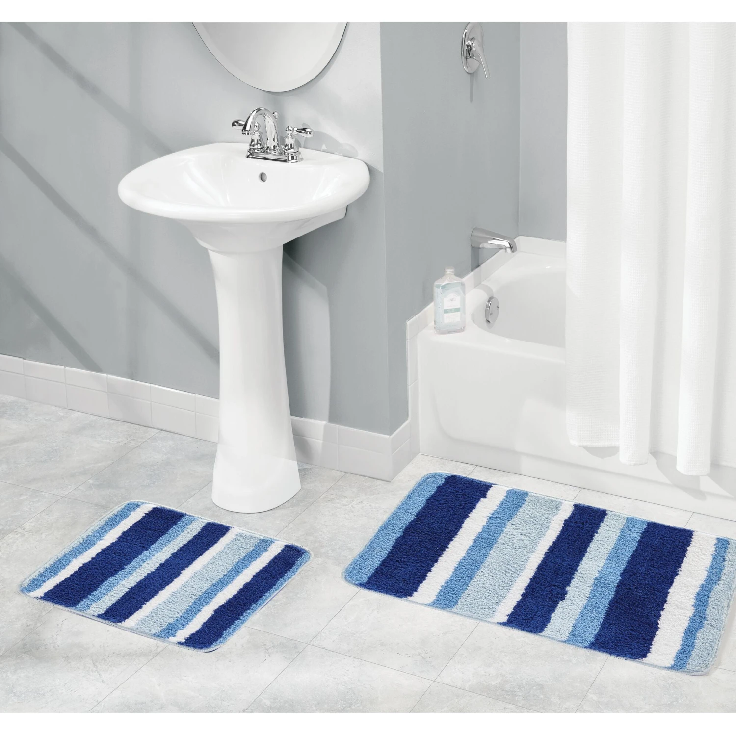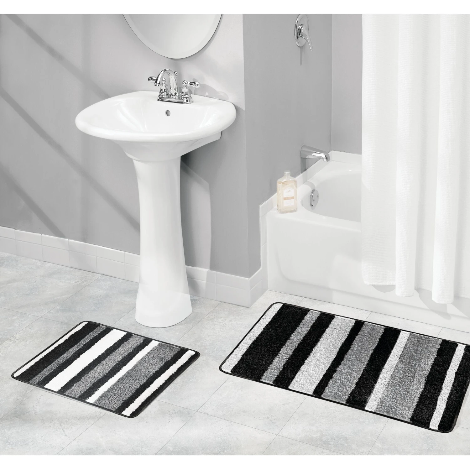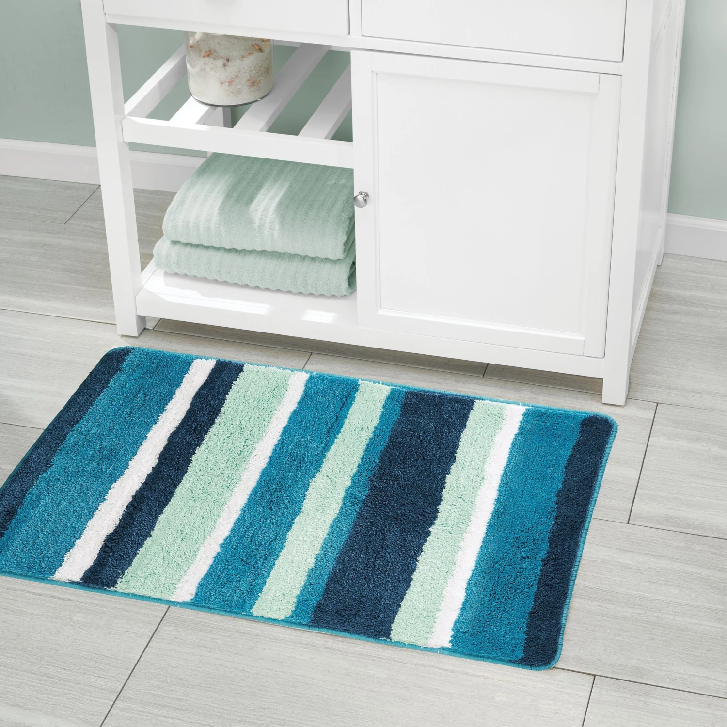 This Striped Non-Slip Bath Mat displays a classic pattern that serves up major style. Available in three different sizes, this soft foundation provides a comfortable place after you get out of the shower or while standing at the sink and is crafted from the softest microfiber polyester construction for long-lasting durability.