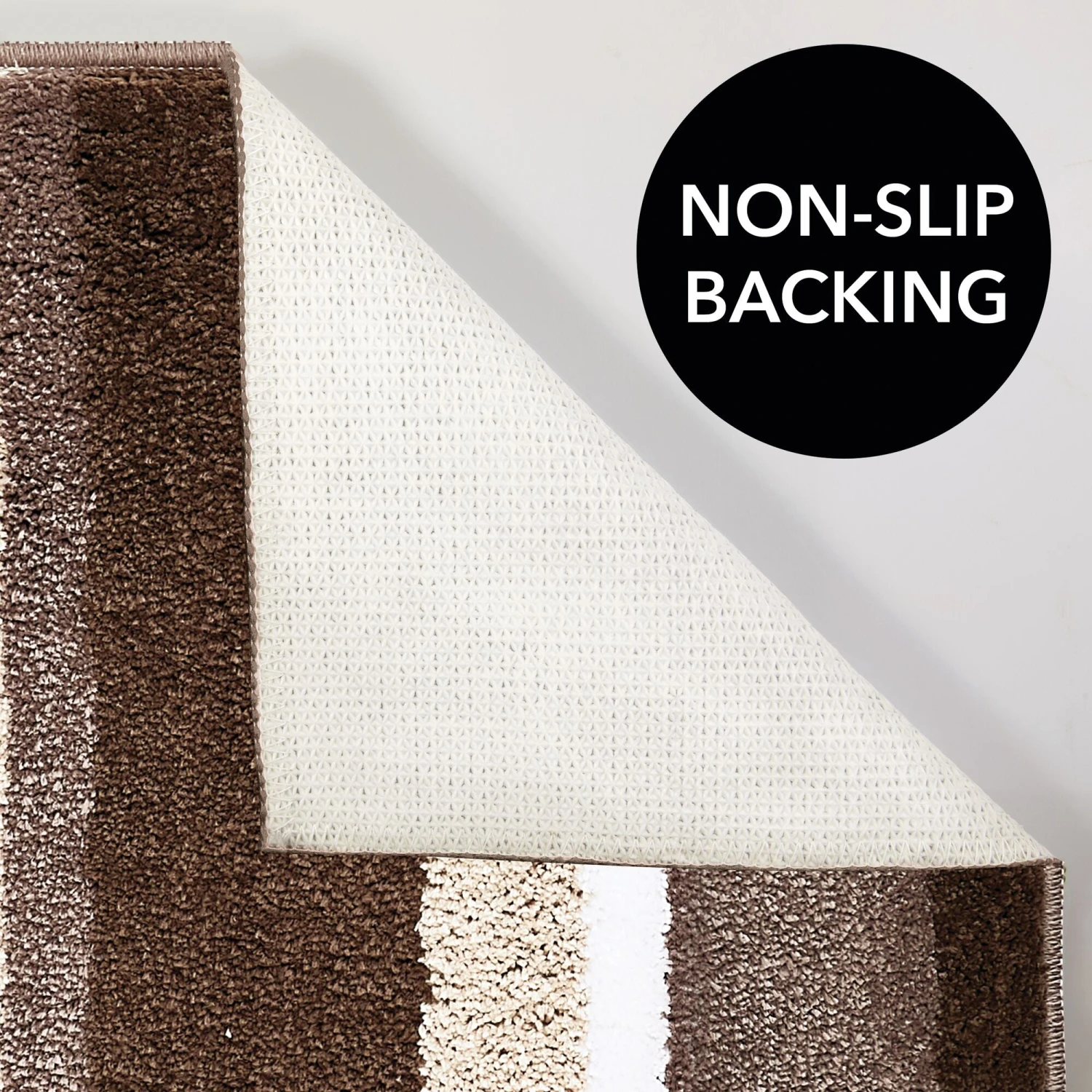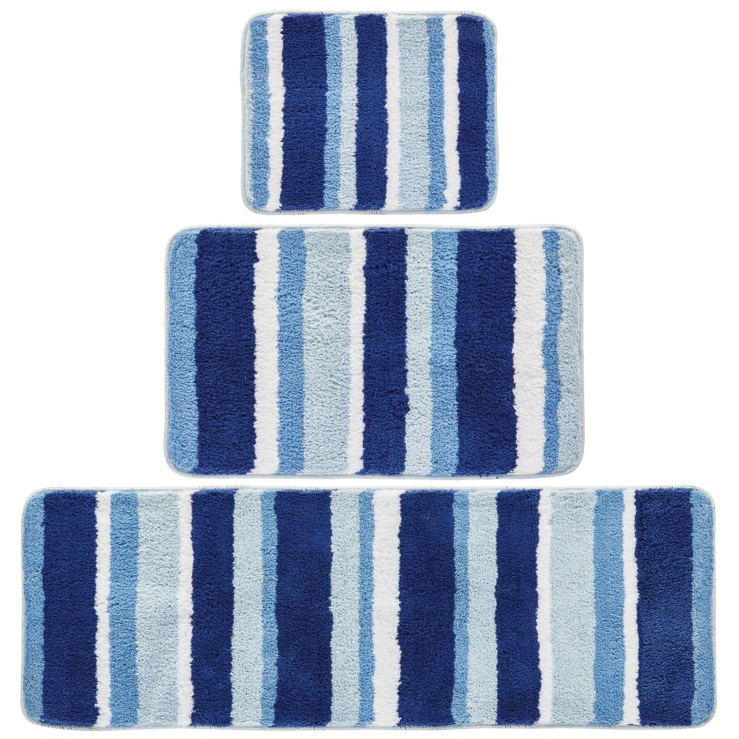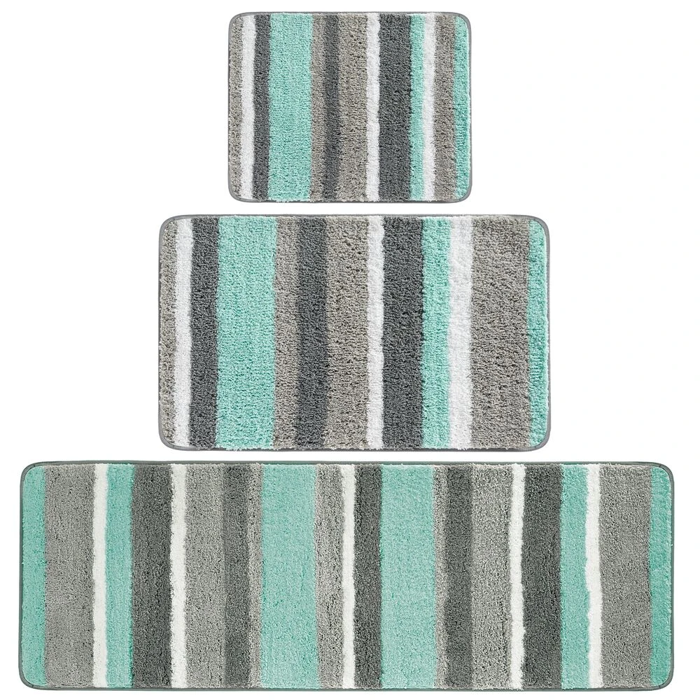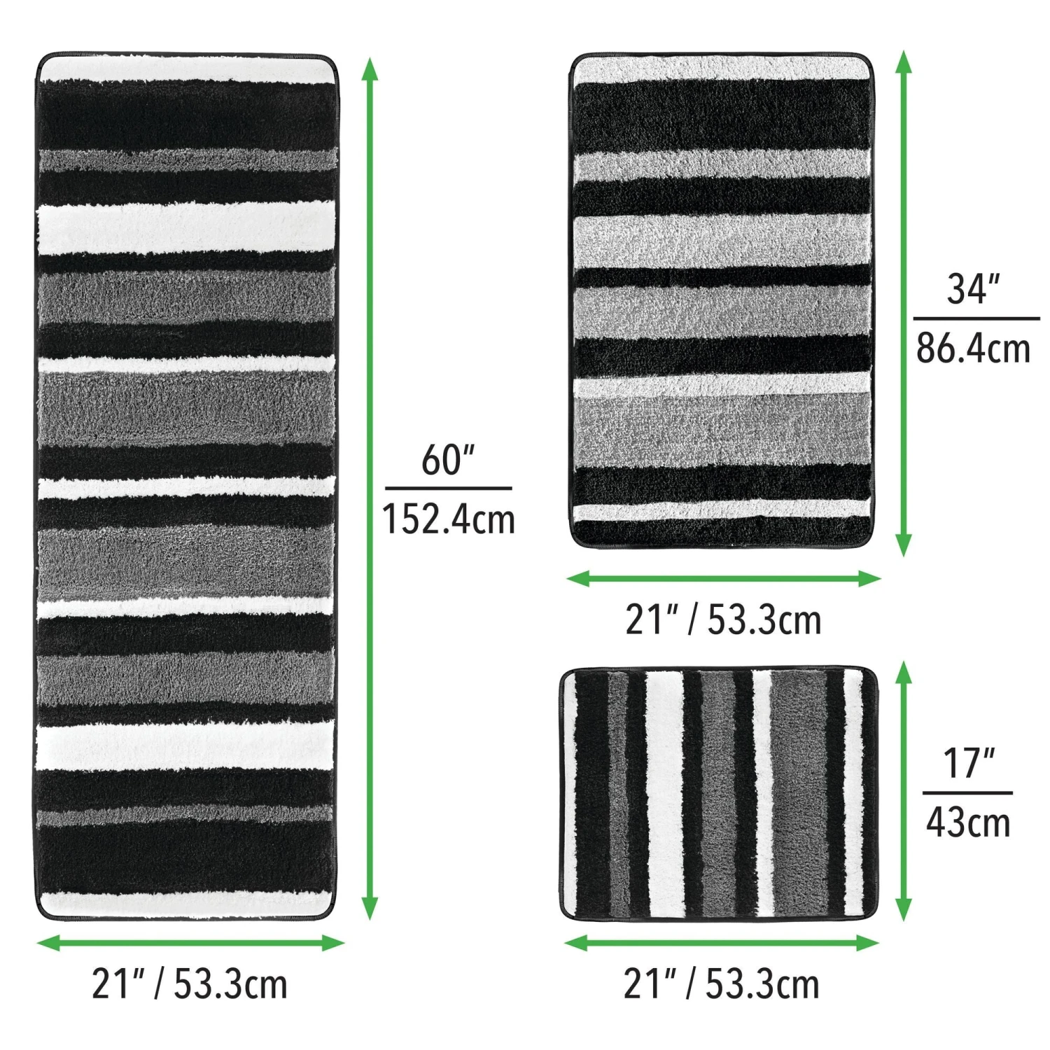 This Striped Non-Slip Bath Mat displays a classic pattern that serves up major style. Available in three different sizes, this soft foundation provides a comfortable place after you get out of the shower or while standing at the sink and is crafted from the softest microfiber polyester construction for long-lasting durability.