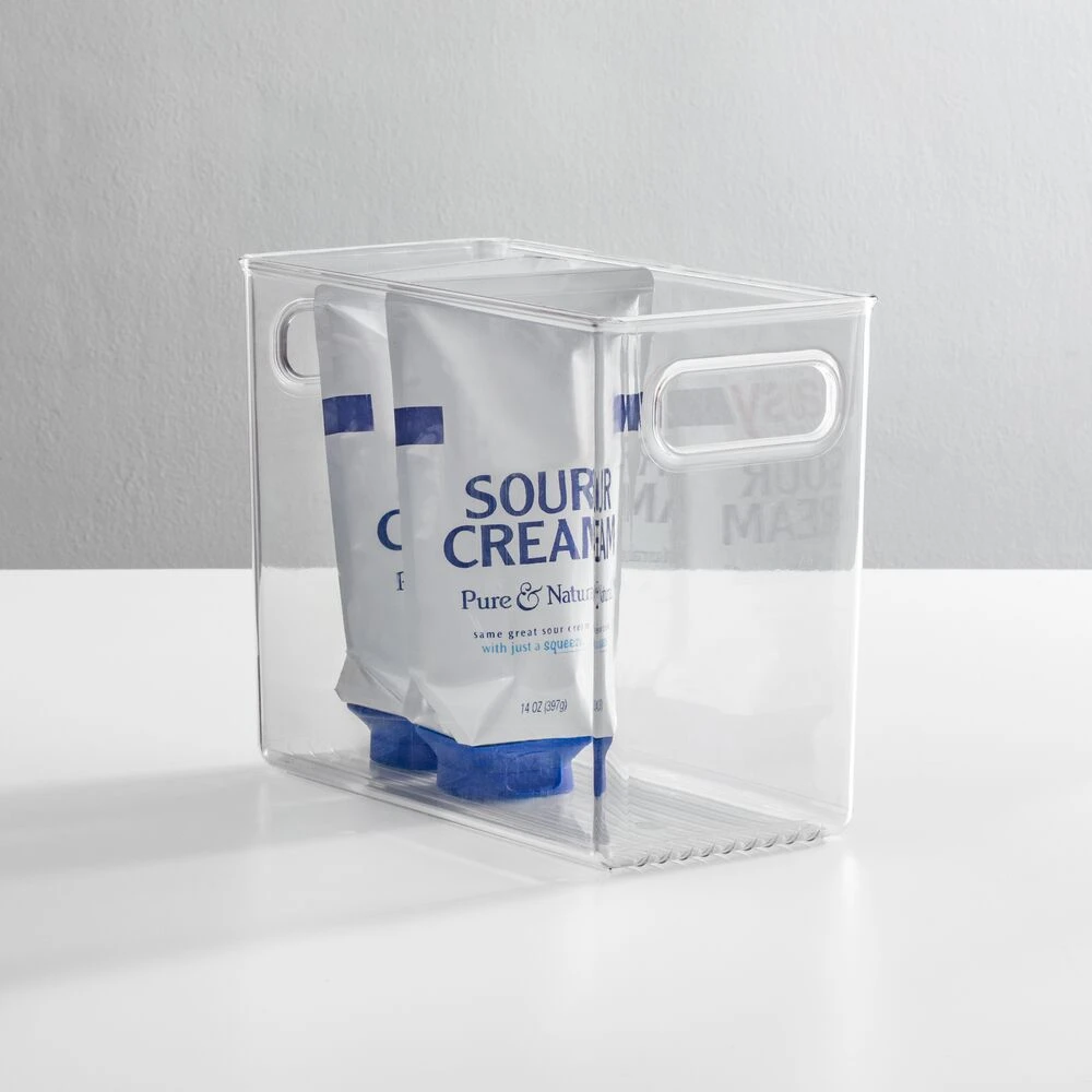 These tall bins are perfect for food and kitchen accessory storage. Organize all of your favorite snacks, canned/dry goods, dish towels, foil, and more. Convenient and easy to use, the built-in carrying handles make them easily portable from counter to table and beyond. Use these bins to create a custom storage solution in any room of your home.